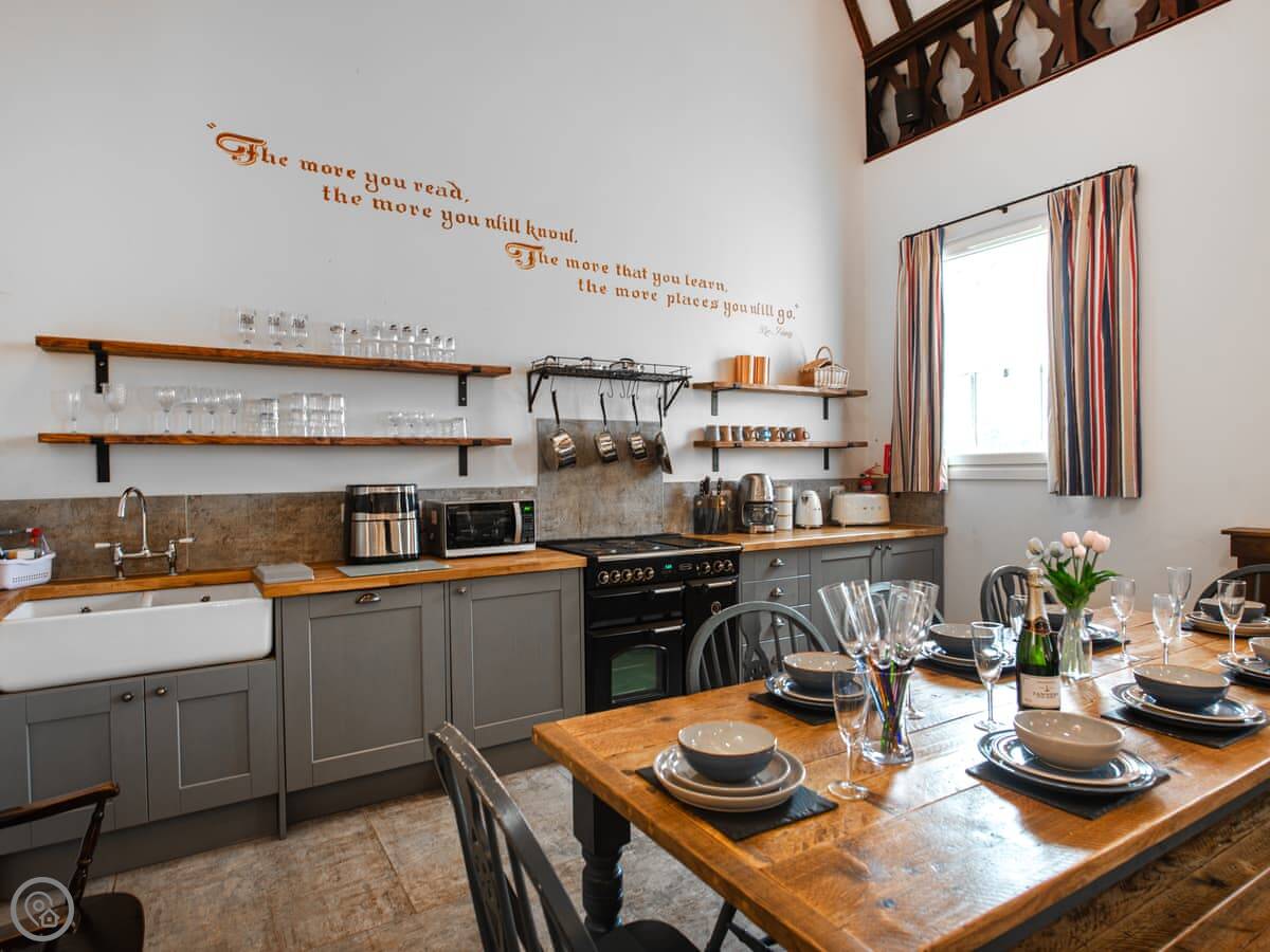 The Old School House 1 is a three bedroomed property of which one is en-suite and has a mezzanine balcony overlooking the open plan living space. The Old Kitchen is a studio apartment with the bedroom area in with the living area.
