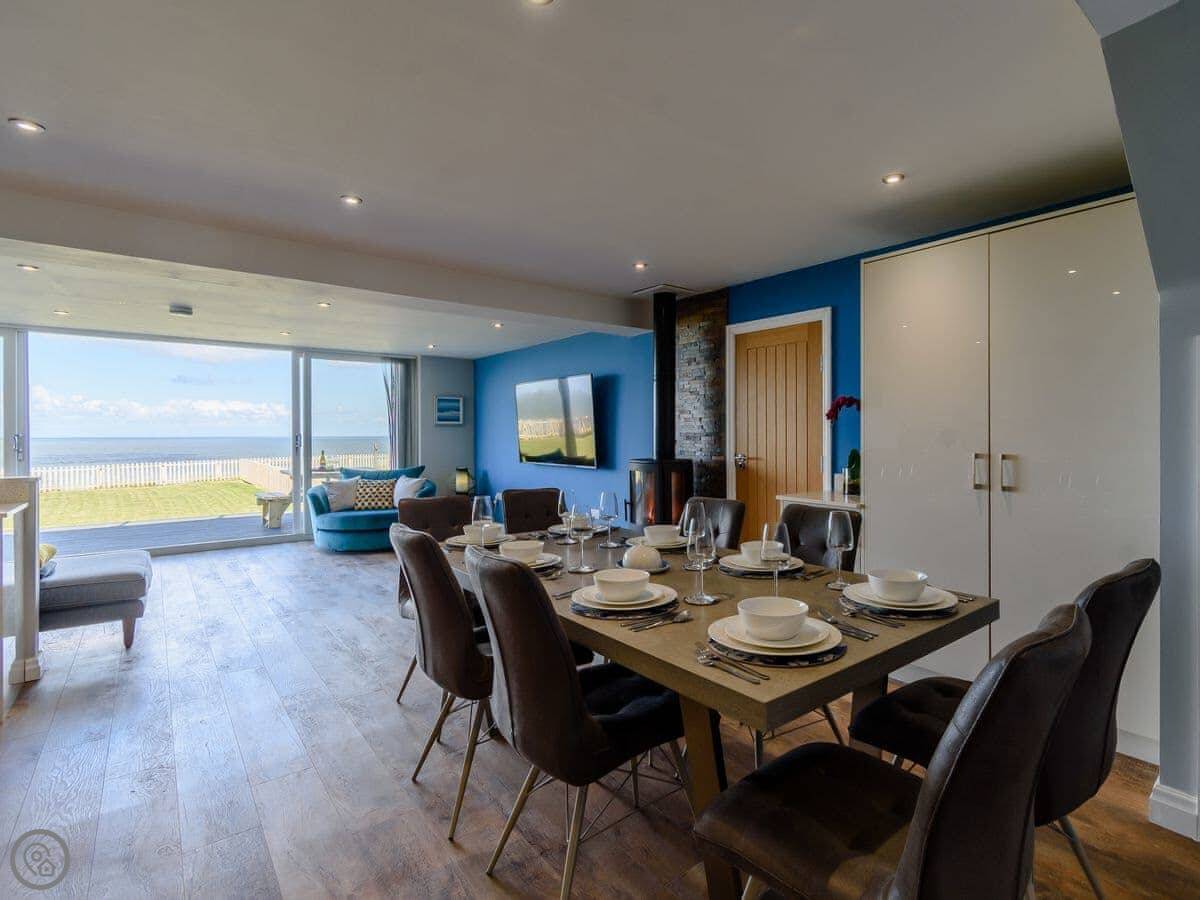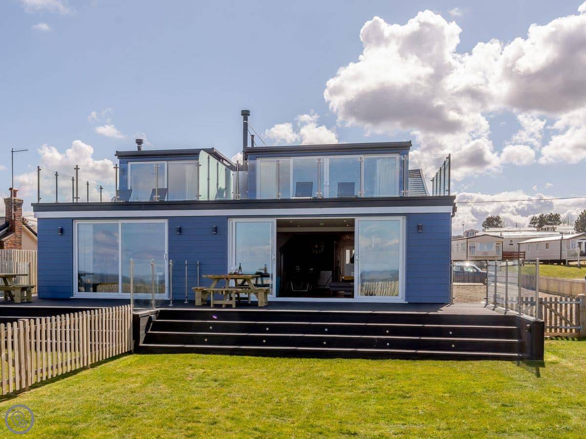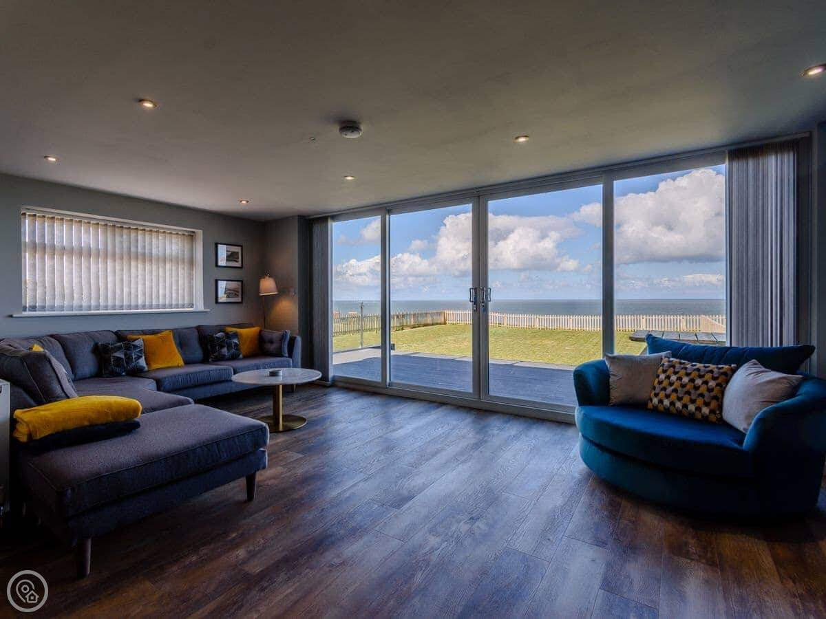 It sleeps eight. Four bedrooms, three bathrooms. It’s a 4 Star place, which means it’s comfortable and well-equipped. One thing to know is the sea-facing side is mostly glass. The views are very good, but if you’re after a cosy, tucked-away cottage feel, it’s not that.