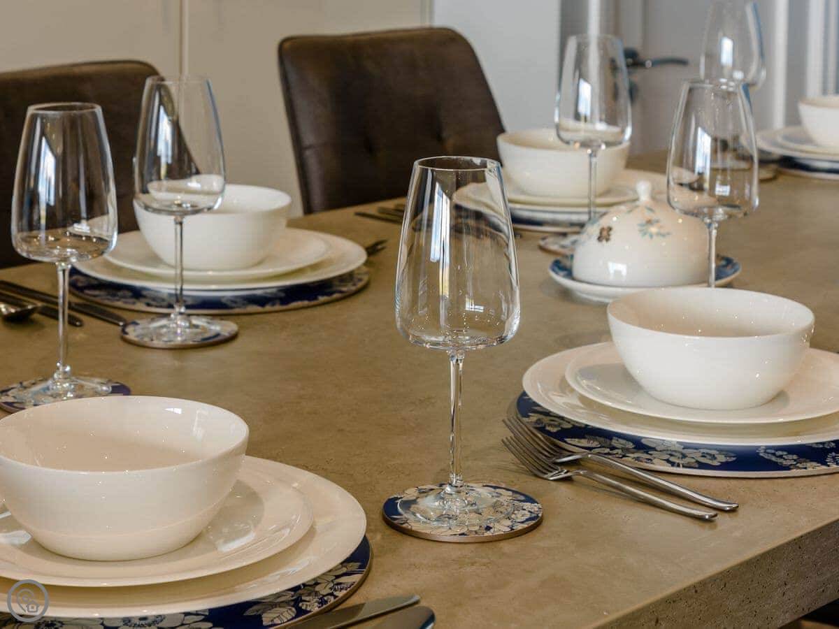 What’s here: a washing machine, dishwasher, TV, WiFi, parking on site. Bedding and towels are included. We can provide a cot and highchair. No pets, sorry.