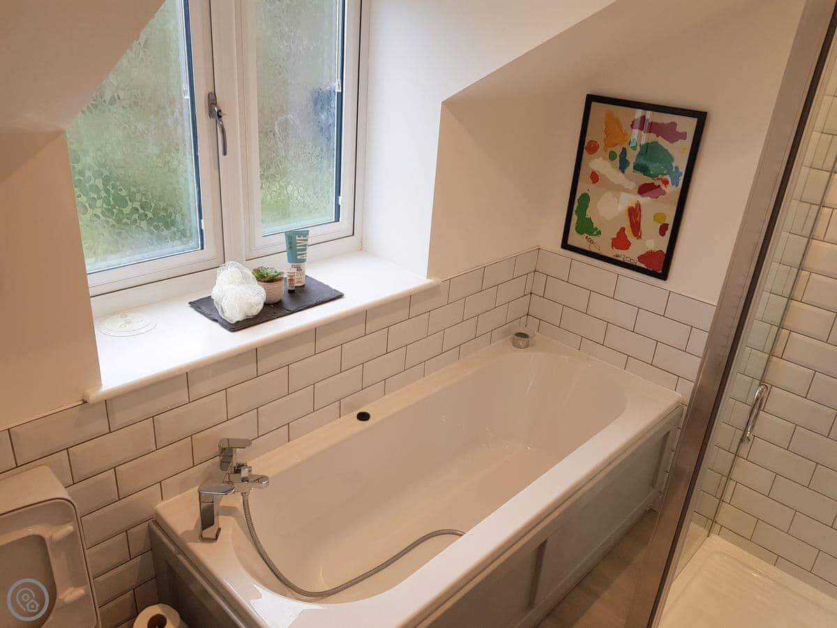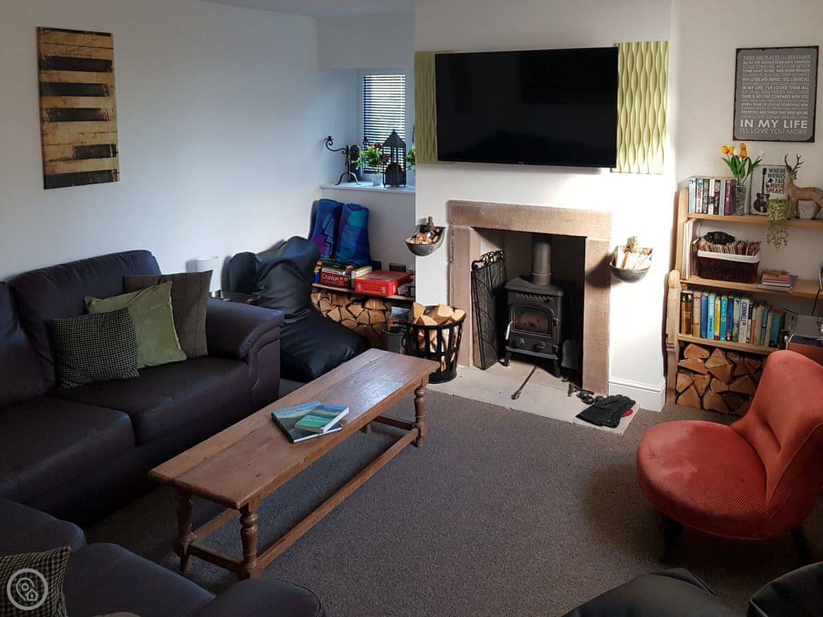In terms of what's here: there's a wood burner, a dishwasher, a washing machine, WiFi, and parking for two cars. Bedding and towels are included. You can bring up to two dogs.