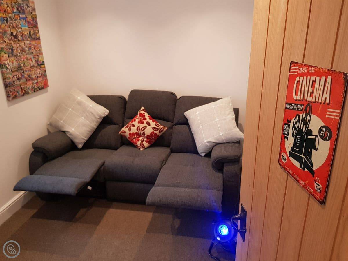 The main thing is the space. There's a cinema room with a big TV. There's also a football table and a record player with some old singles. Outside, there's a putting green on the lawn. It's enclosed, so it's safe for dogs or kids.
