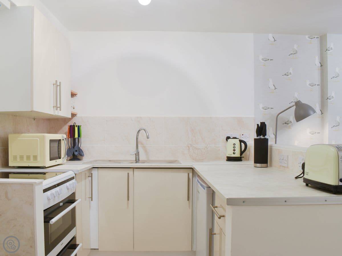 The cottage is for two people. One bedroom upstairs, one bathroom. It’s got a 4 Star rating. That means it’s comfortable and well looked after. The garden is enclosed, which is handy. You can park on the drive.