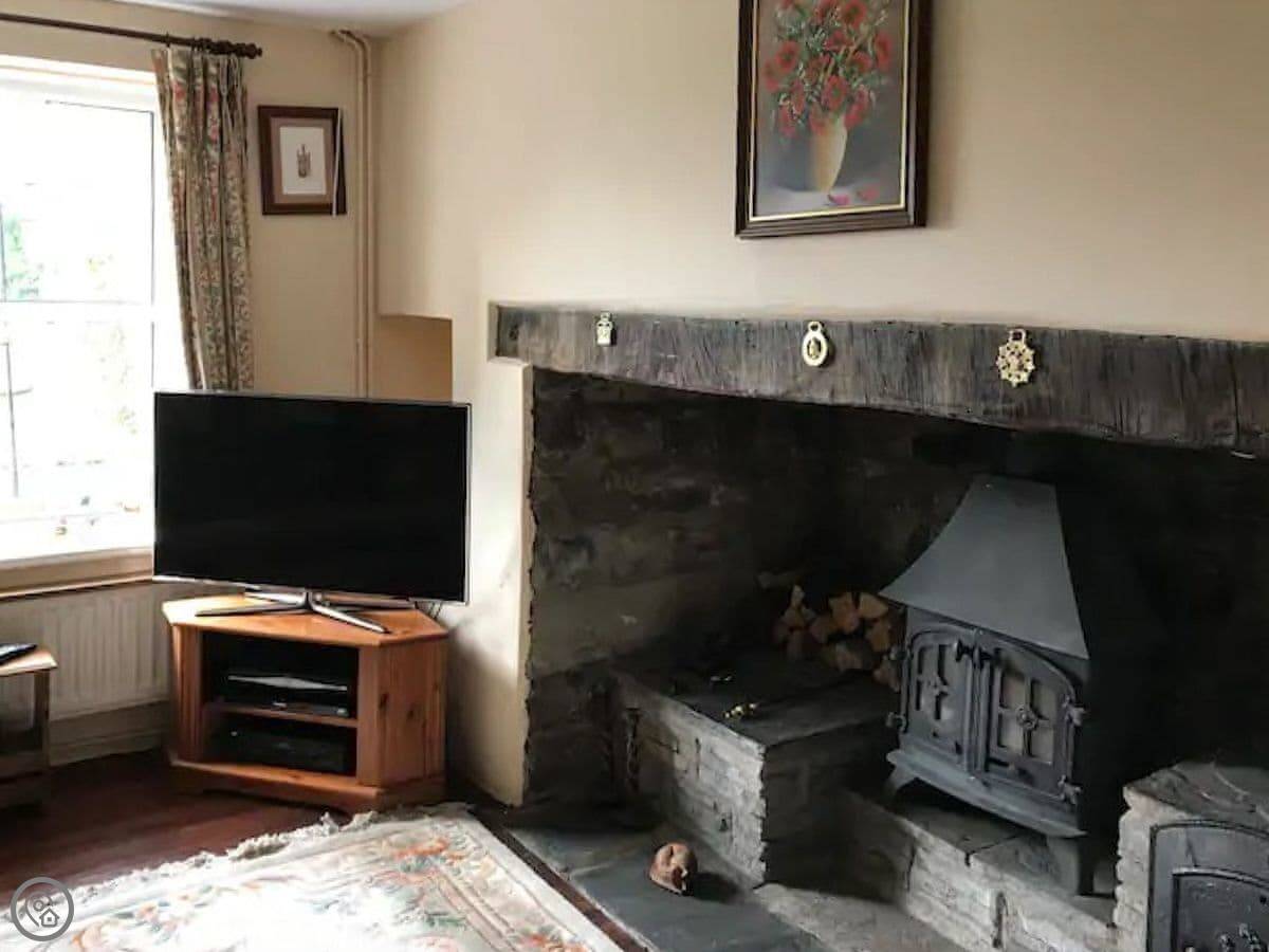 Inside, there's a woodburning stove, a dishwasher, and a washing machine. Bedding and towels are included. There's a cot if you need it, and parking right outside. There's WiFi, but the signal can be patchy because of the location.