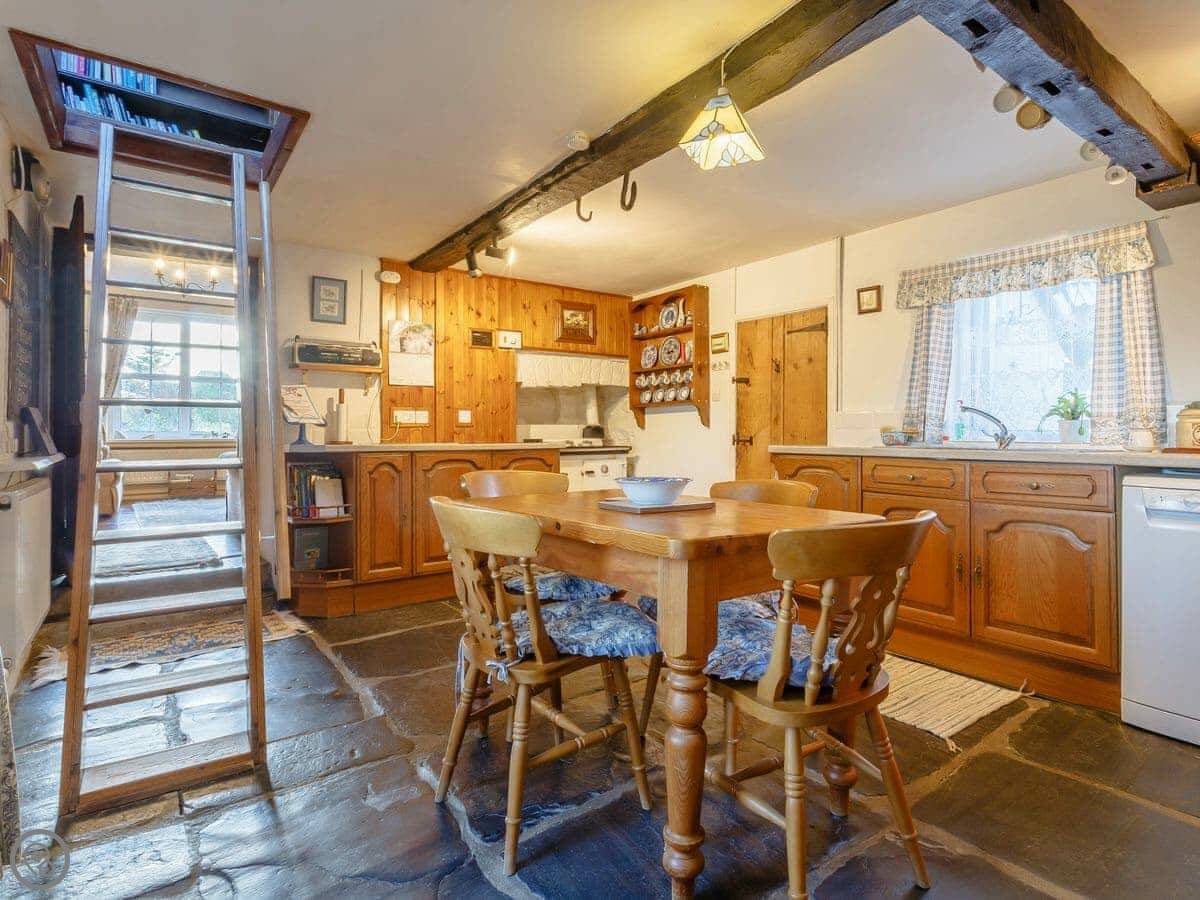 It sleeps five, in three bedrooms. There's one bathroom with a walk-in shower. It's got a 4 Star rating. The thing you need to know is the stairs. There are two separate staircases to the first floor. One of them, from the kitchen up to the second bedroom, is like a steep ladder. It's fine if you're steady on your feet, but worth mentioning.