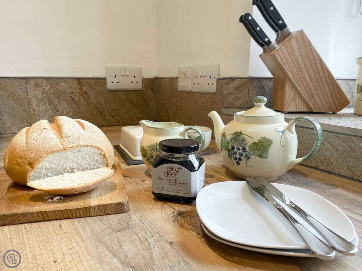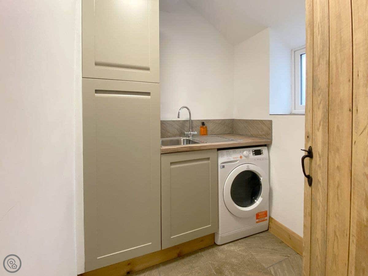 For facilities, it's got a wood burner, WiFi, a washing machine, and a dishwasher. Bedding and towels are included. There's parking on site. You can bring one dog.