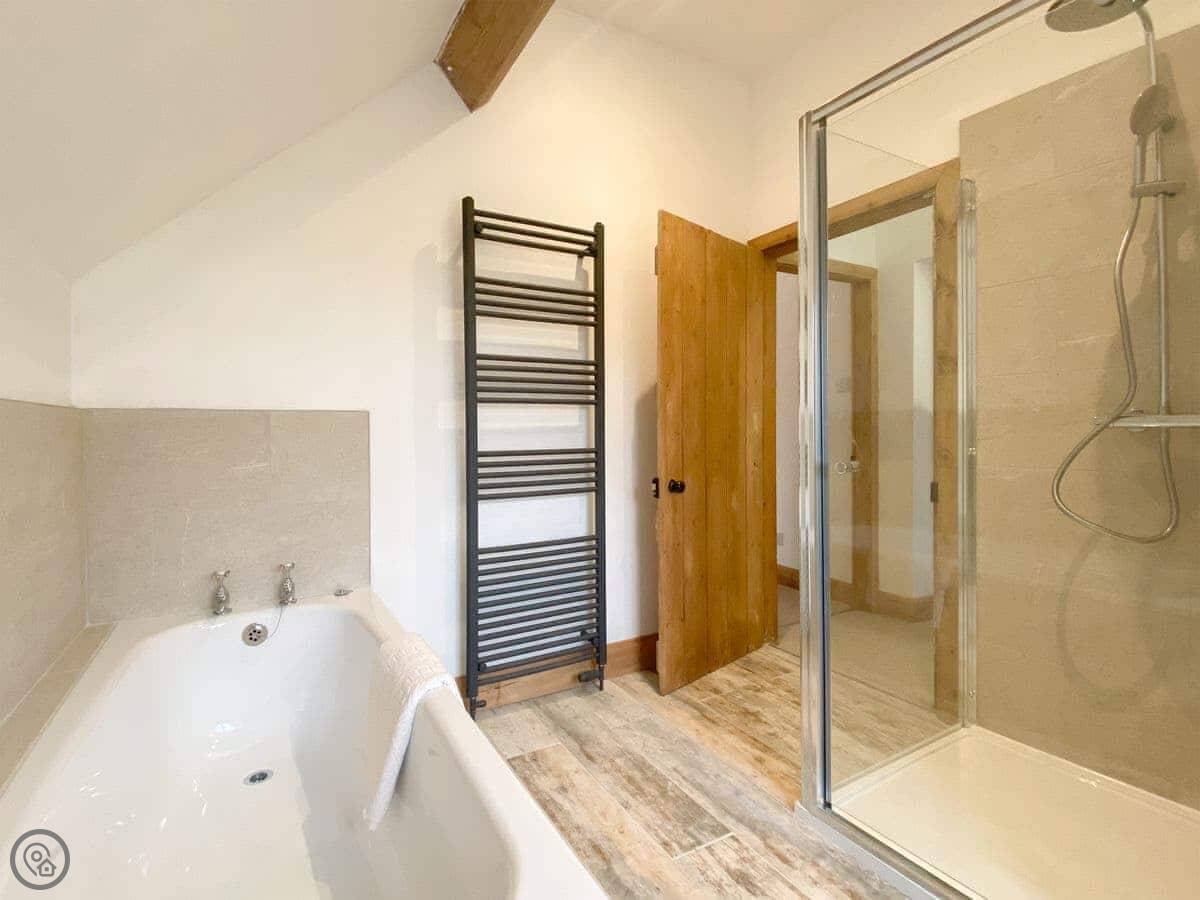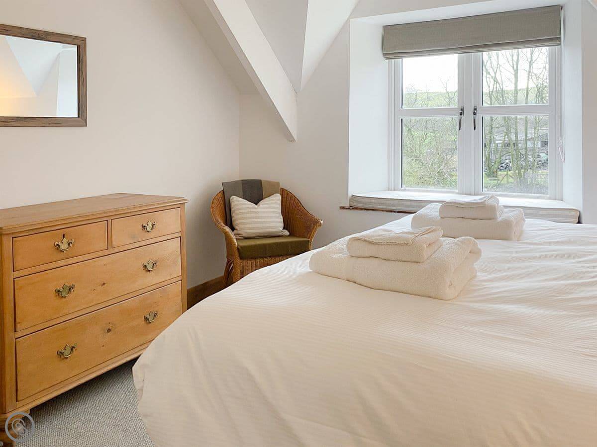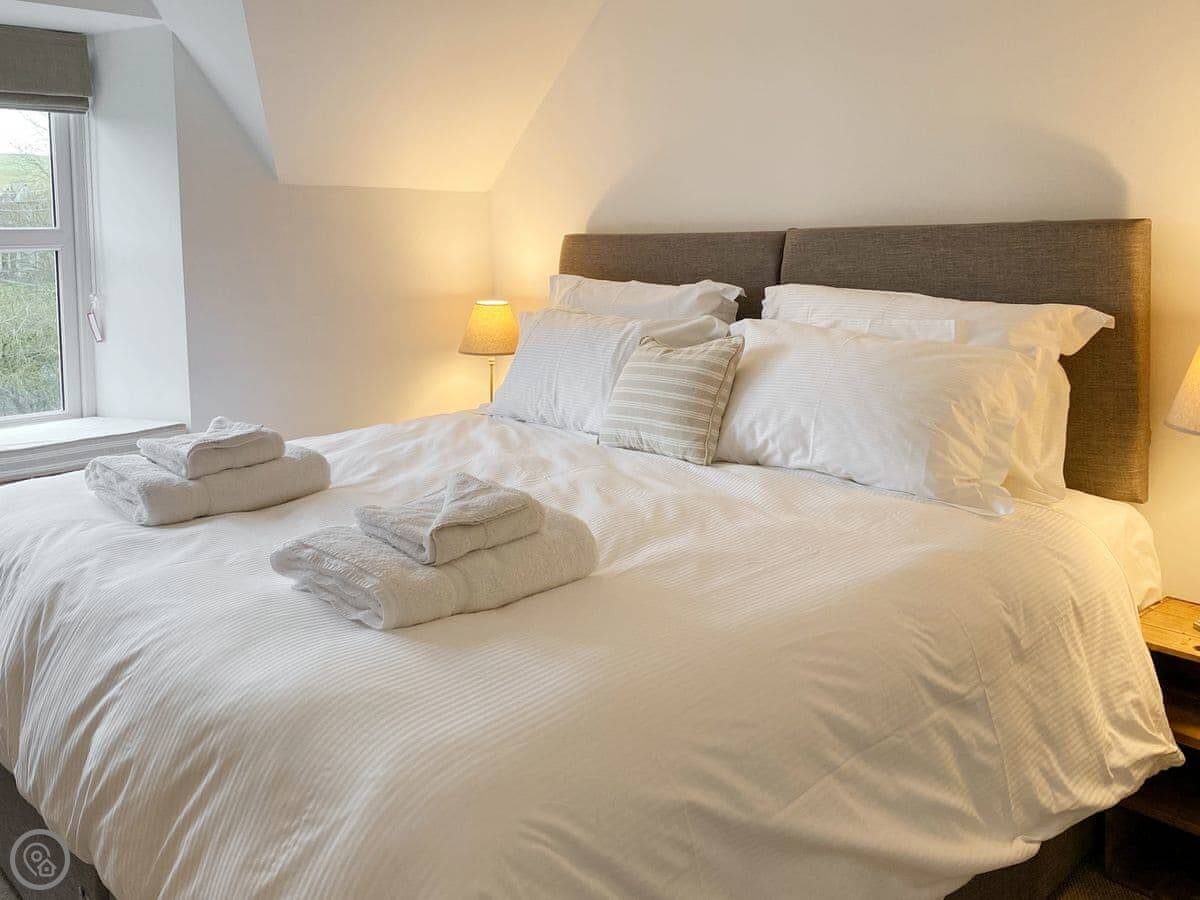 It's a two bedroom cottage that sleeps four. One bathroom upstairs. It's got a 4 Star rating. The place has been done up, so it's clean and modern inside, but it's still an old cottage. The stairs are steep and a bit narrow, which is normal for round here. Just a heads up.