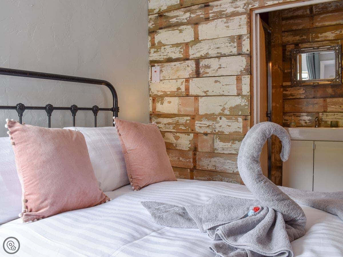 The place has an open plan living area downstairs with a woodburning stove. There's Wi-Fi and a TV. Bedding and towels are included. You can bring up to two dogs.