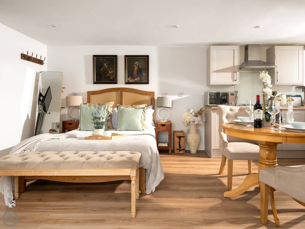 Meadow Cottage is one of two cottages on site, just outside Blandford Forum. It’s peaceful, mostly just fields around. You're sharing the grounds with one other cottage, but each gets its own private garden area. This one faces south-west, so you get the sun in the evening.