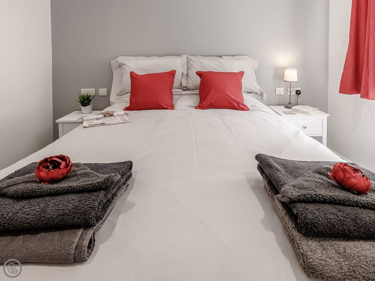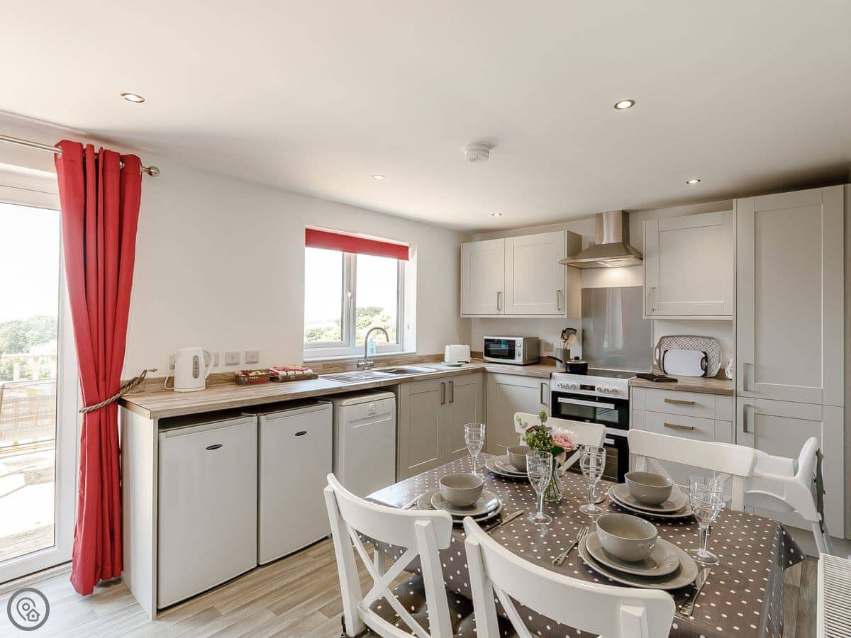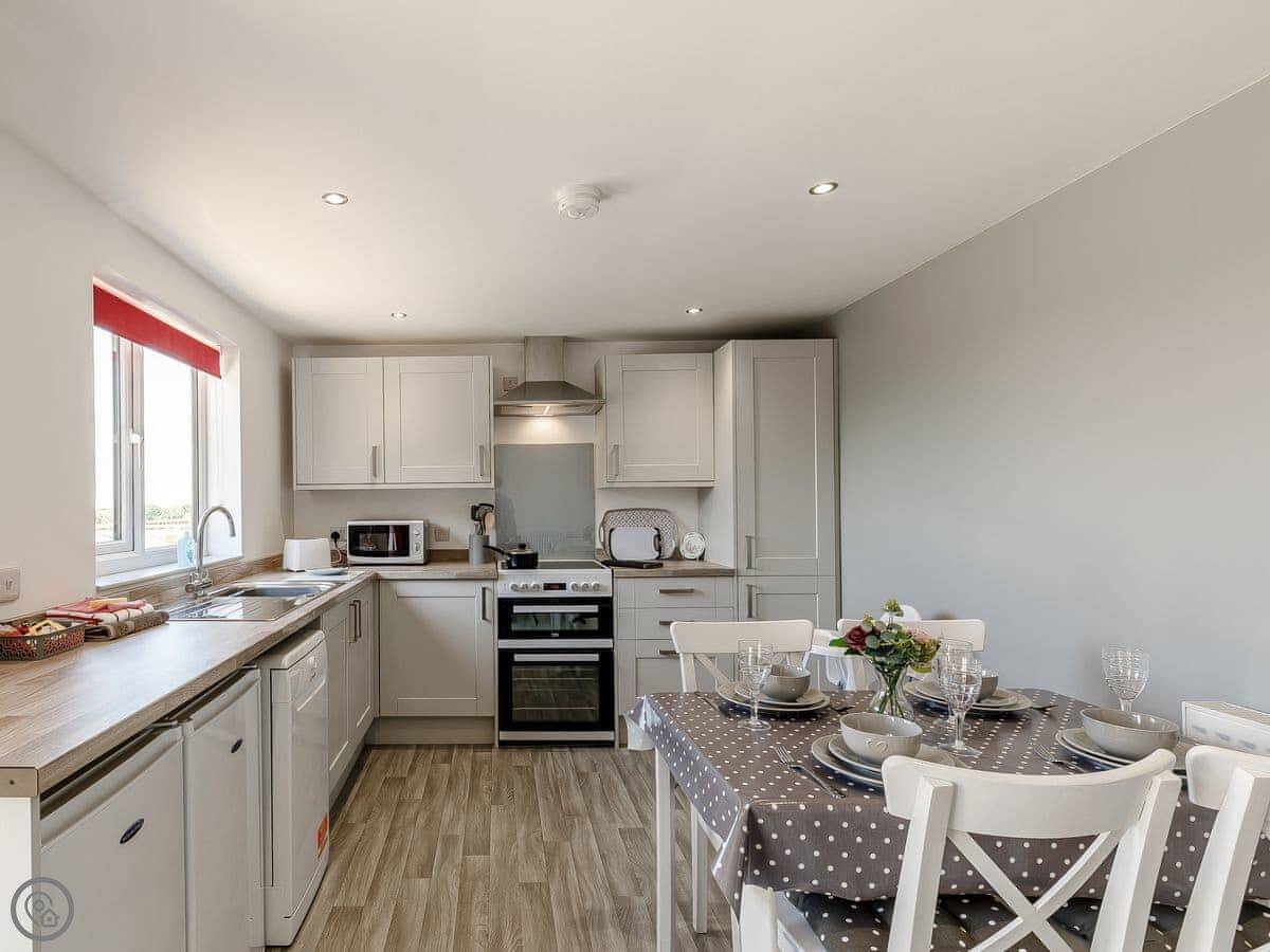 Inside, it's open plan. There's a dishwasher, Wi-Fi, and parking right outside. Bedding and towels are included. There's a cot and a highchair if you need them.