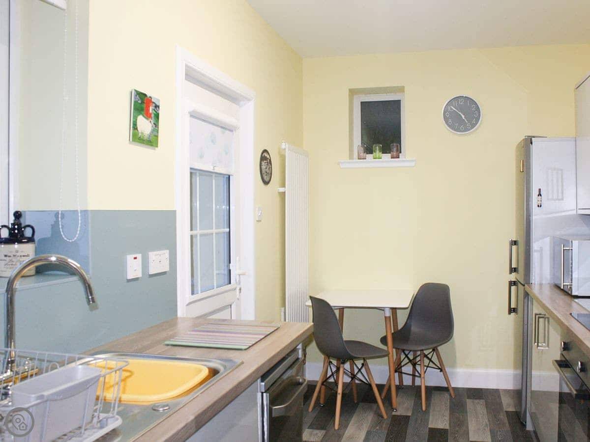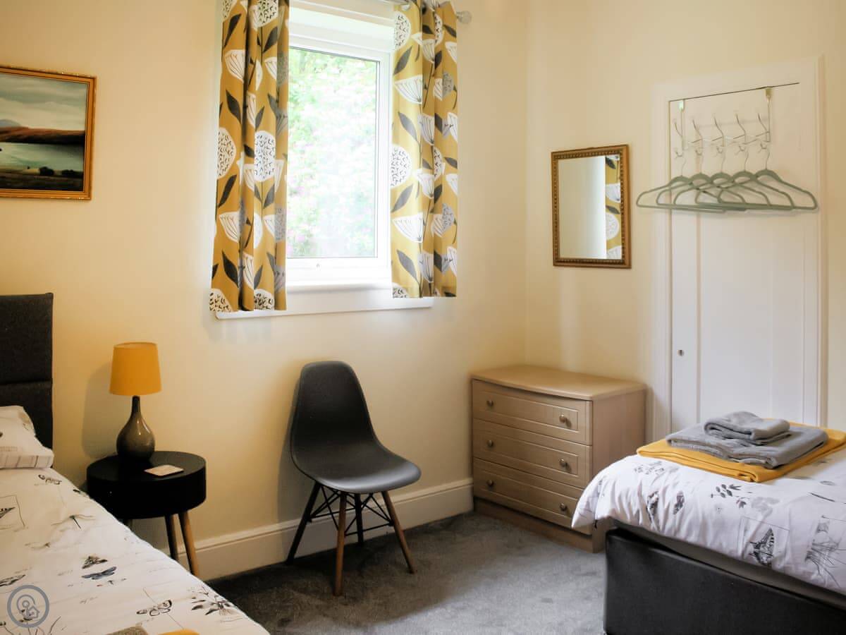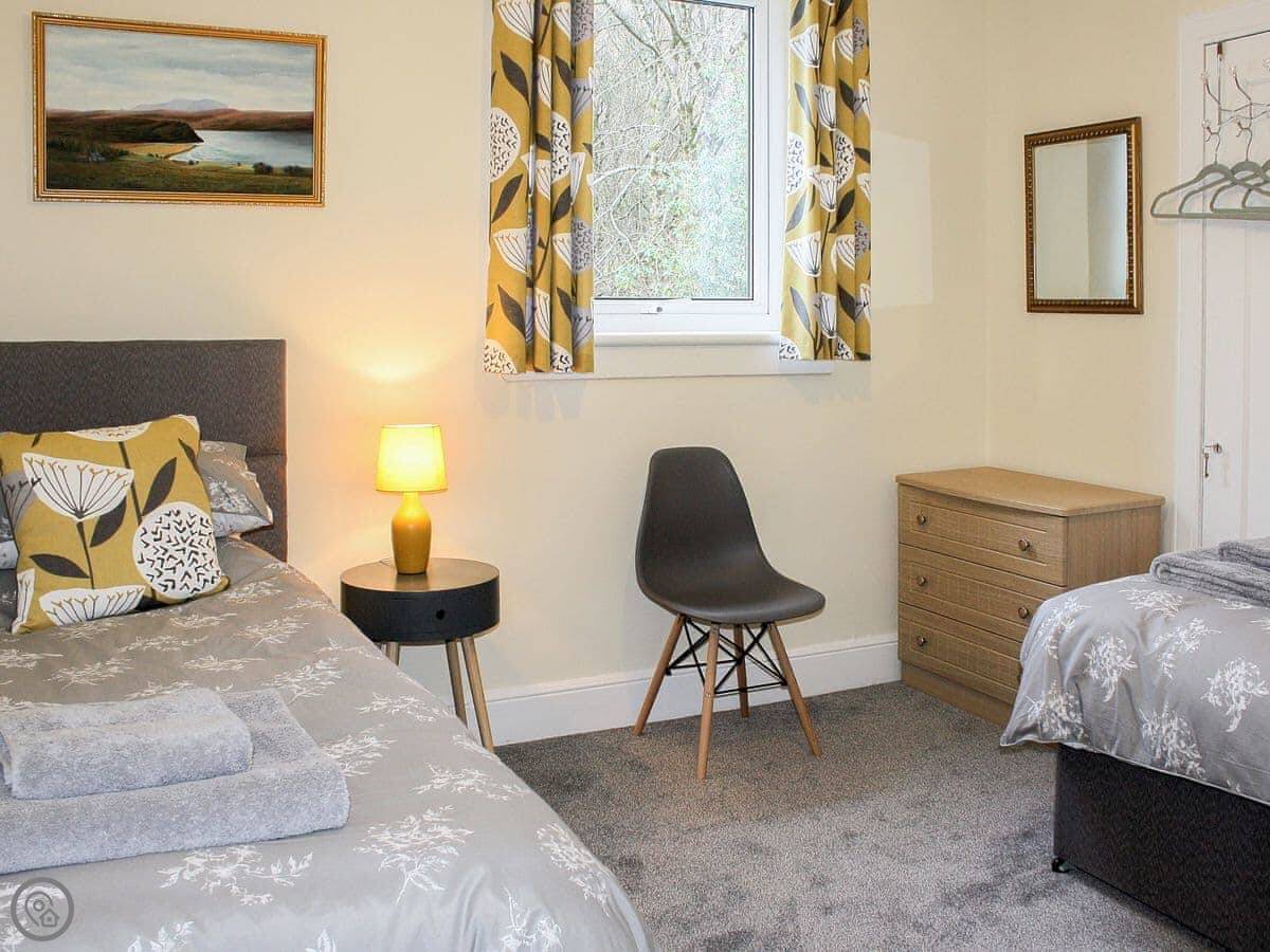 Riversdale Cottage is in St Fillans, Perthshire. It's a detached house, so no neighbours on the other side of the walls. It sleeps three people. Two bedrooms, one is a kingsize, the other has twin beds. One shower room, which is a walk-in shower. It's all on the ground floor.