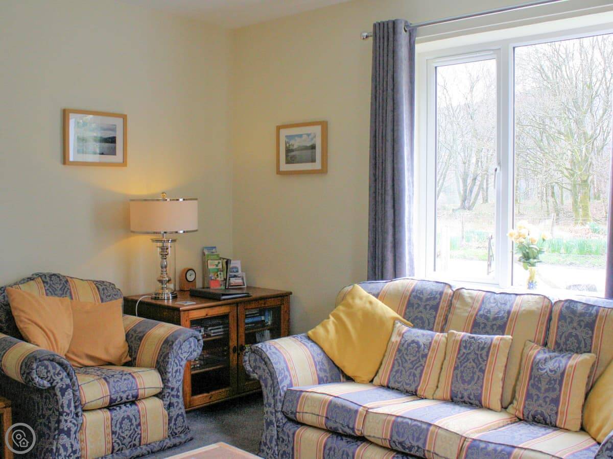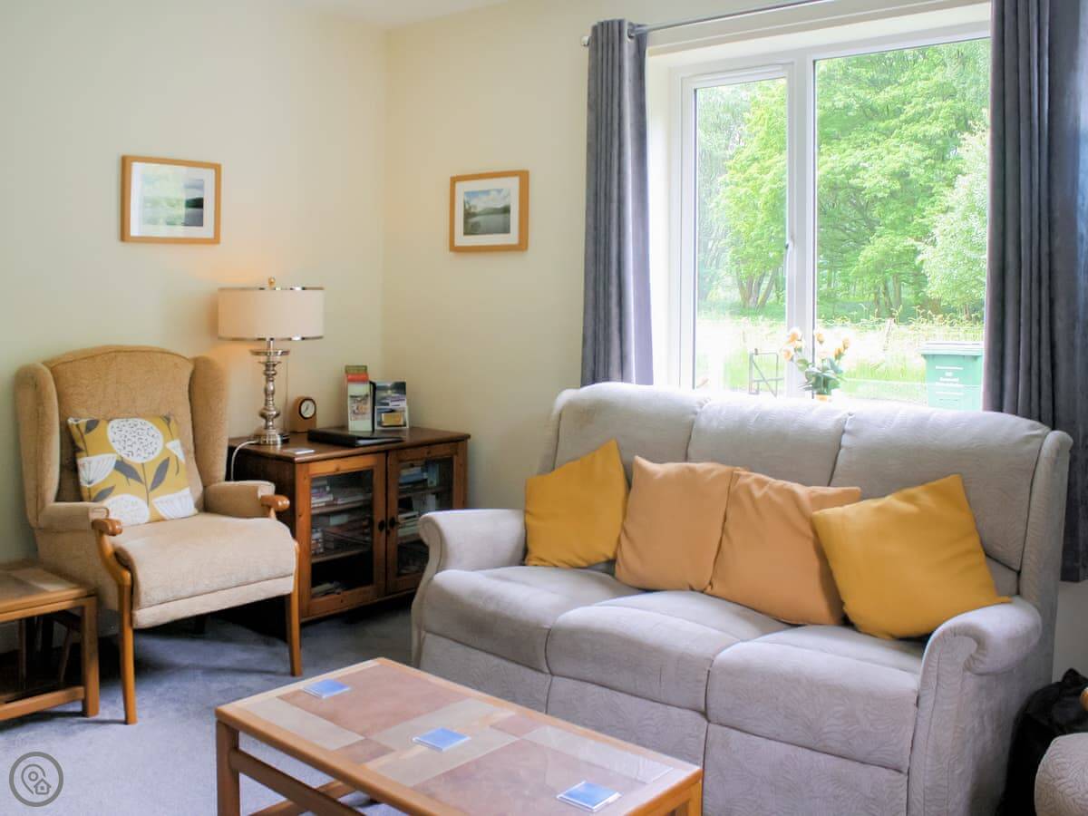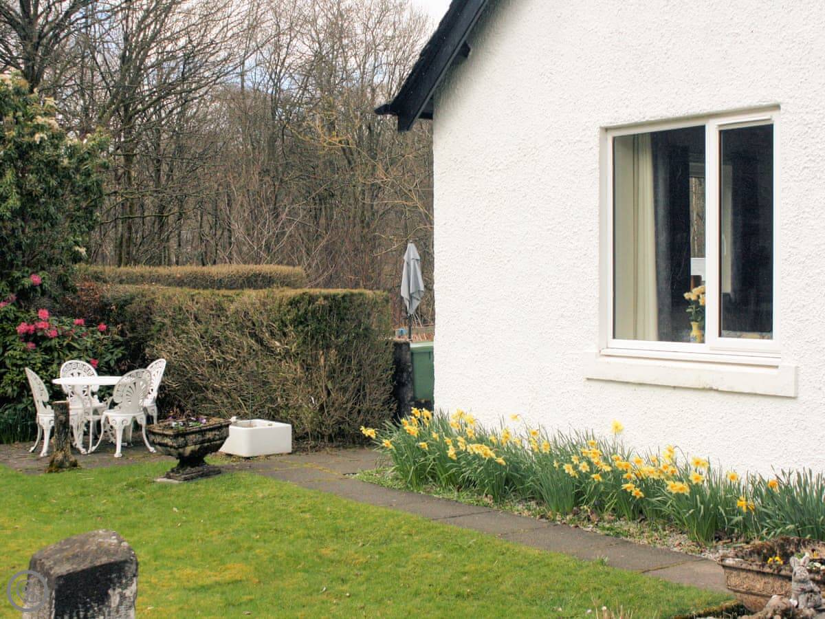 The garden is the main thing. It's a proper garden with a patio area. You sit out there and you can hear the river. We get red squirrels and birds. Sometimes a deer walks past at the bottom.