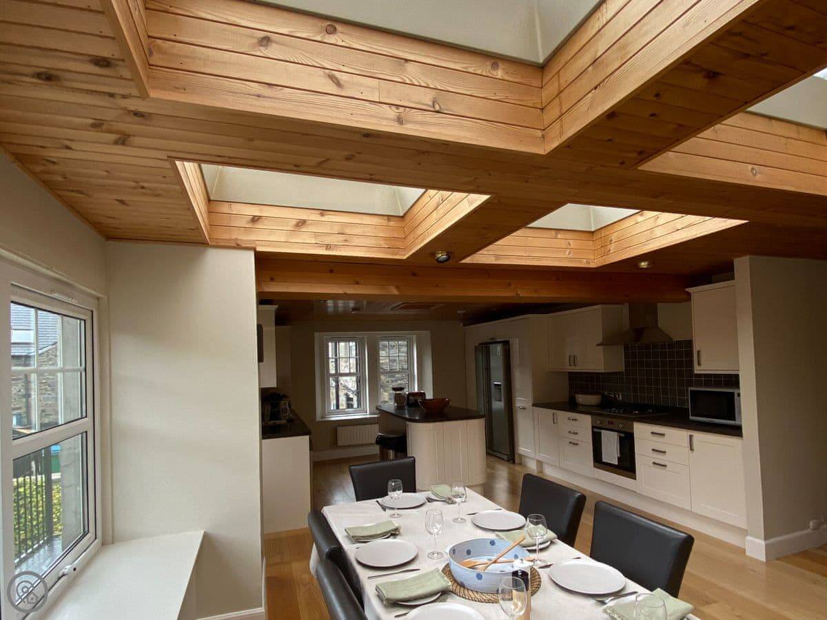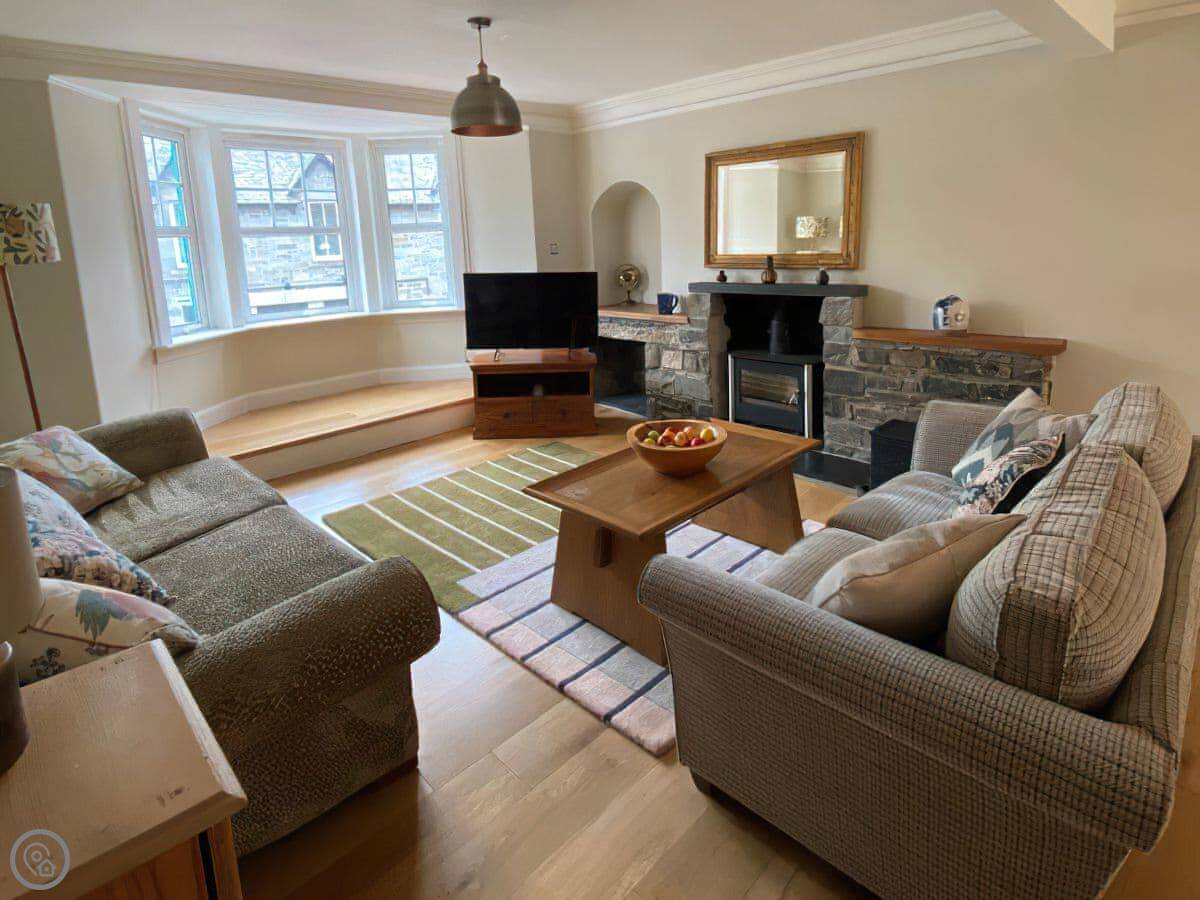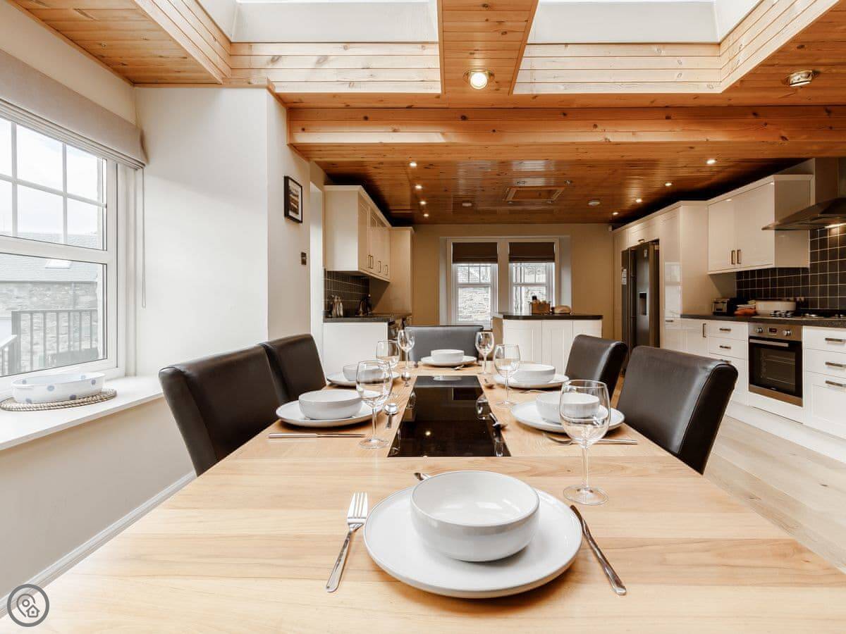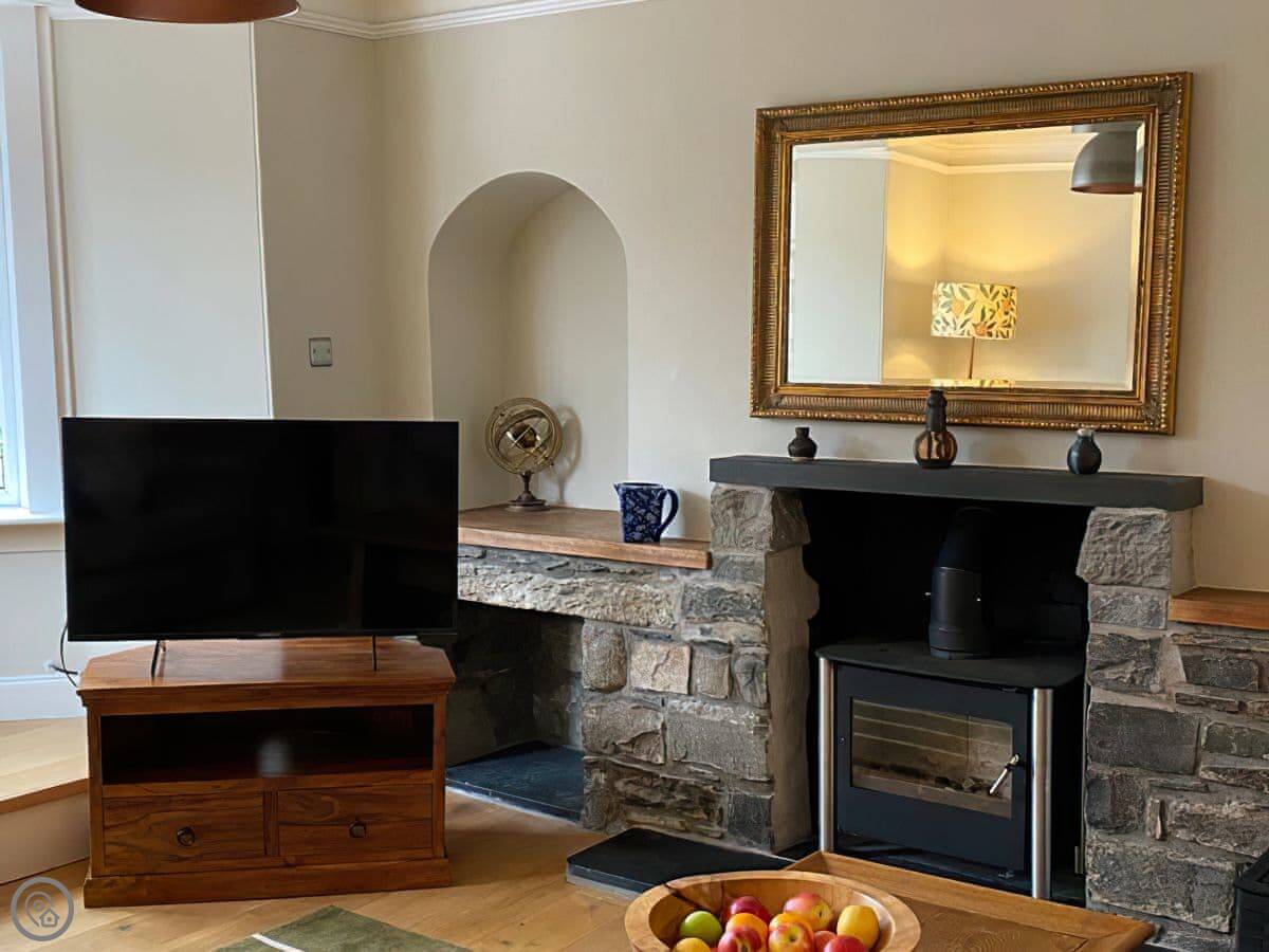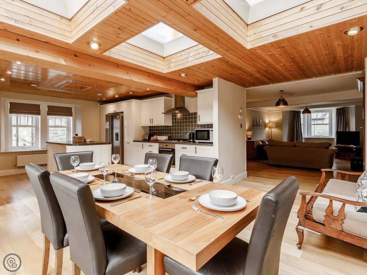 It sleeps six. Three bedrooms, two bathrooms. It’s got a 4 Star rating, so it’s comfortable and well looked after. The living space is all open plan, which is good if you’re all in together. There’s a woodburning stove for cooler evenings.