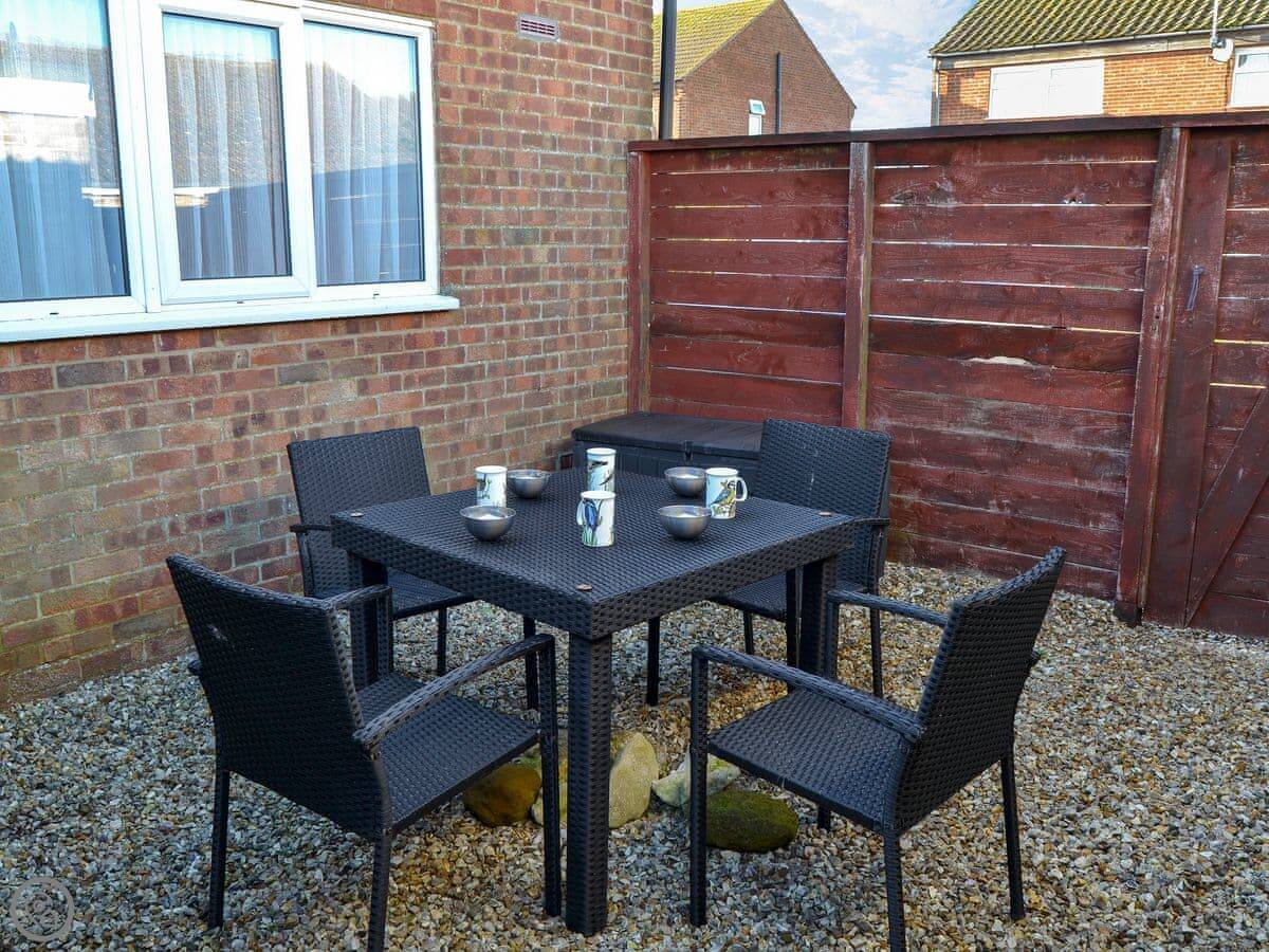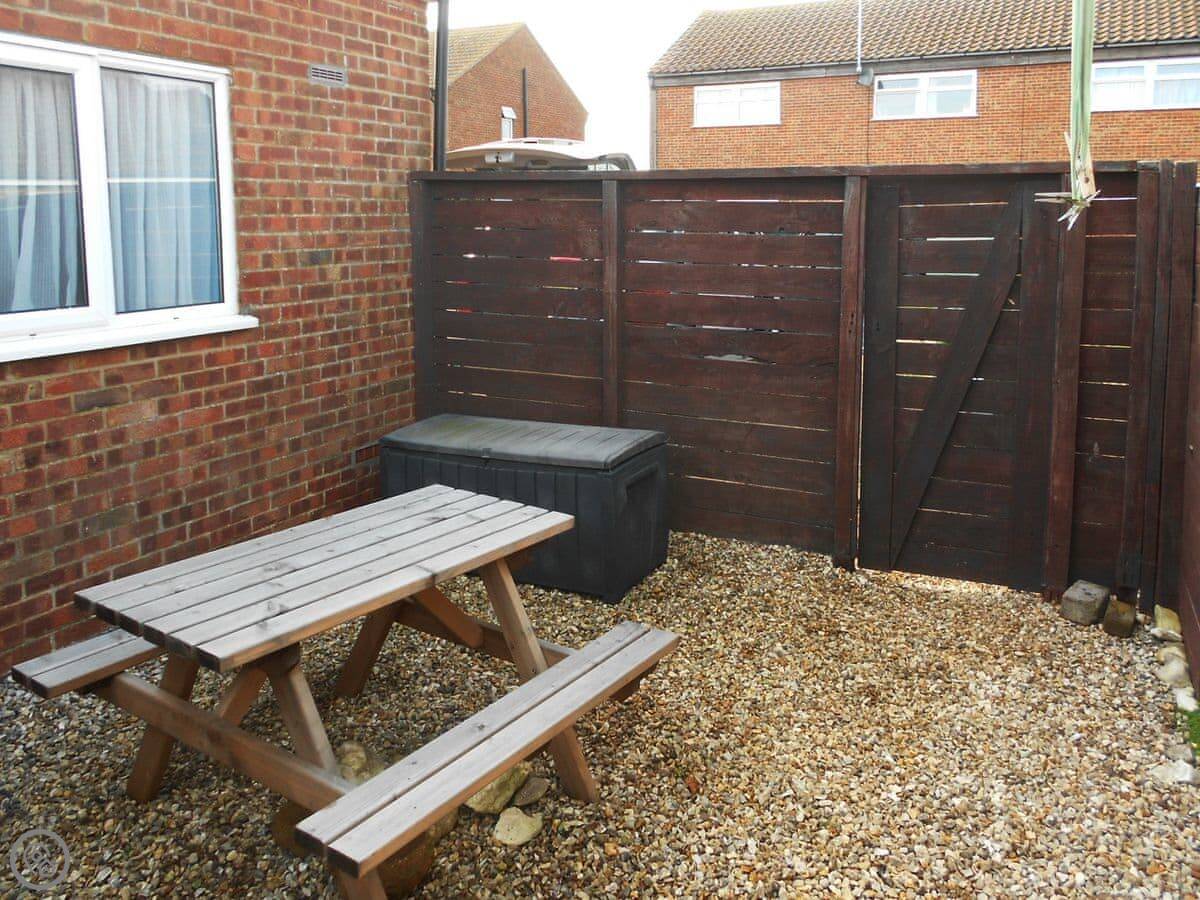 This place is Bonnieville. It's a bungalow in Hunstanton. You're 100 yards from the beach, which is sandy. The front looks onto a little shared area, and you've got a private, enclosed garden out the back.