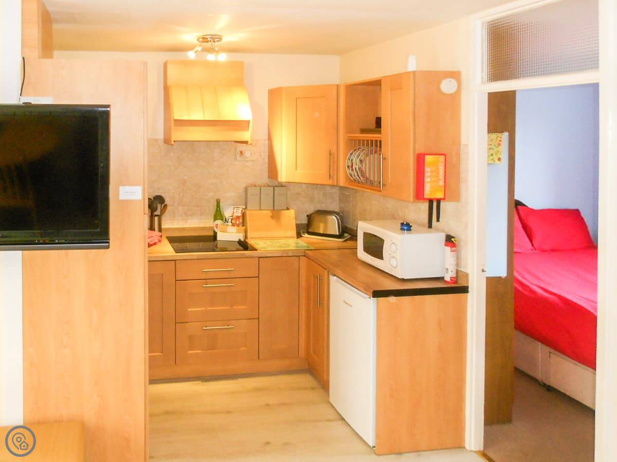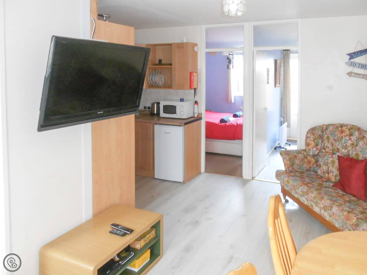 The promenade with the arcades and places to eat is a short walk away. There's a supermarket close by. The town centre is about a fifteen minute walk. You can get the land train along the front if you don't fancy walking.