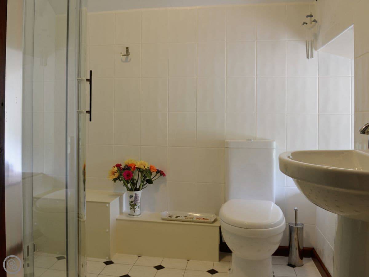 Inside, there's a wood burner. We provide the wood for it. There's a TV, WiFi, a washing machine, and parking right outside. Bedding and towels are included. There's a shower, no bath.