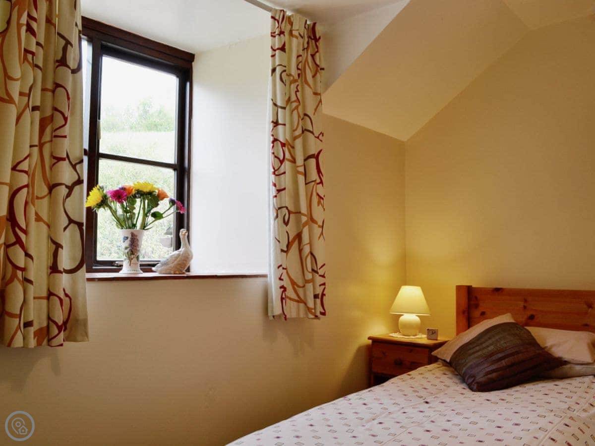 The cottage is for two people. Two bedrooms, one bathroom. It's got a 4 Star rating. There's a wood burner if you want it, and the place stays warm. The wi-fi is fine for normal things like emails.