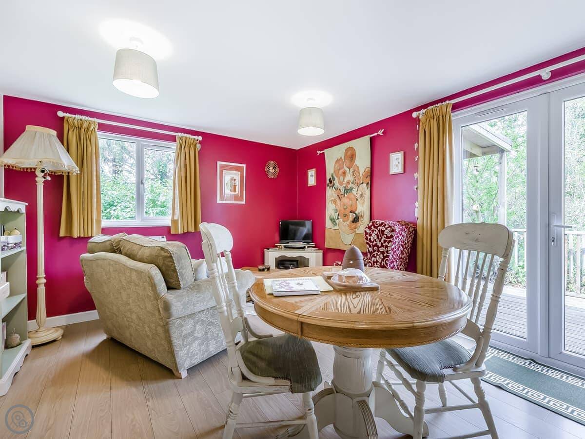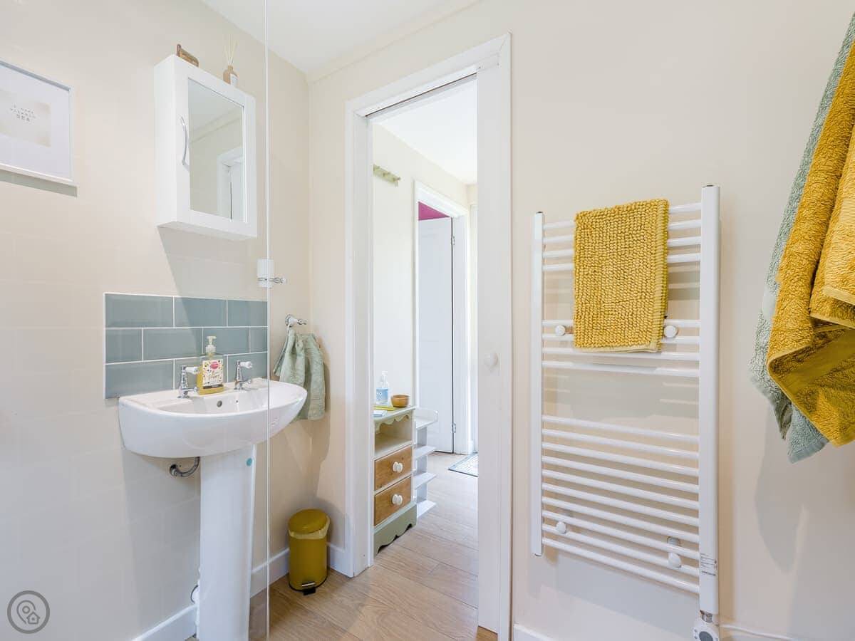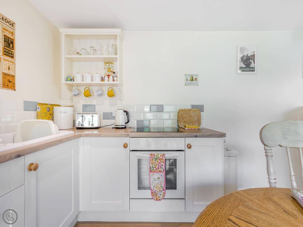 Inside, it's open plan. There's a TV, WiFi, a washing machine, and the bedding and towels are included. We've also got a travel cot and a highchair if you need them.
