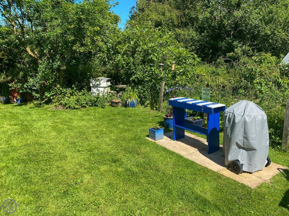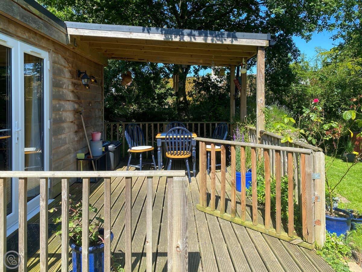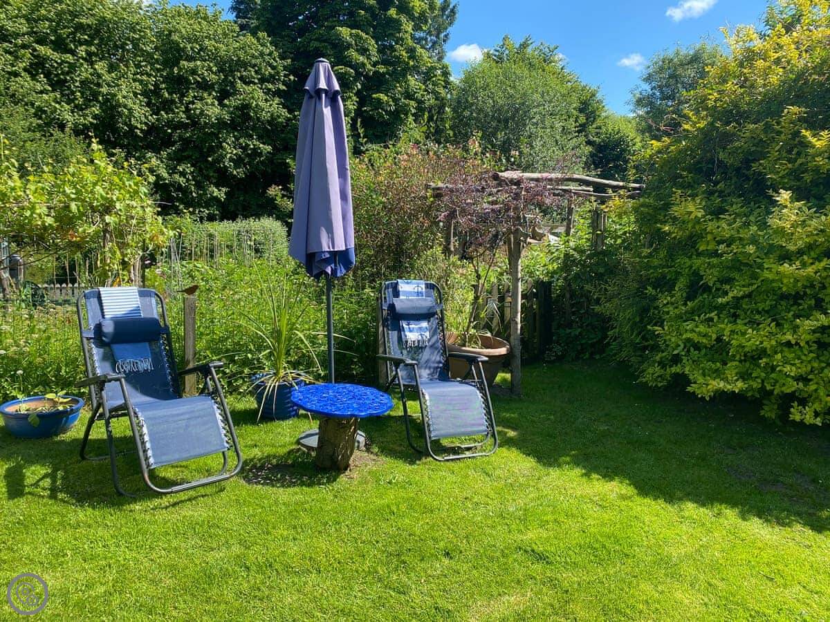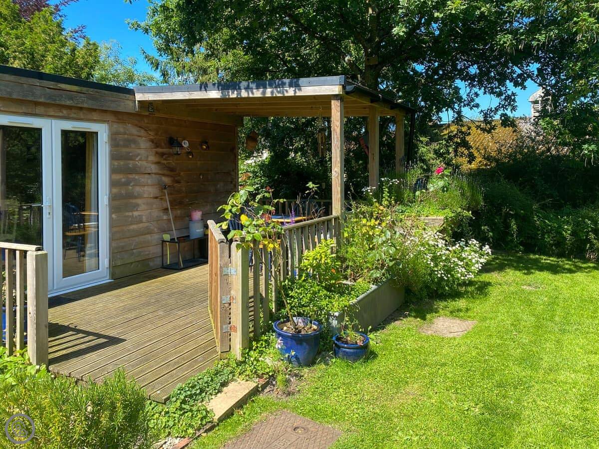 The garden is enclosed, which is handy for the dogs. There's a decked area with a covered bit. You get a BBQ, bike storage, and parking right outside.