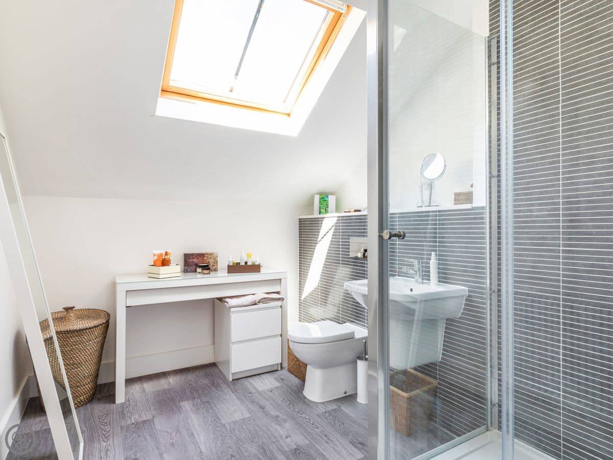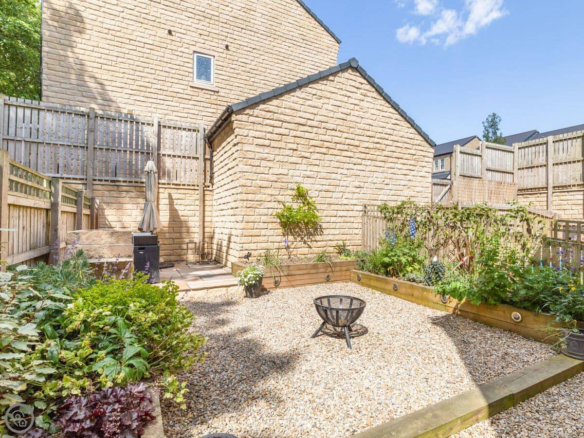 It sleeps six. Three bedrooms, each with its own bathroom. That bit is quite handy. The garden is at the back, enclosed. It gets the sun in the evening.