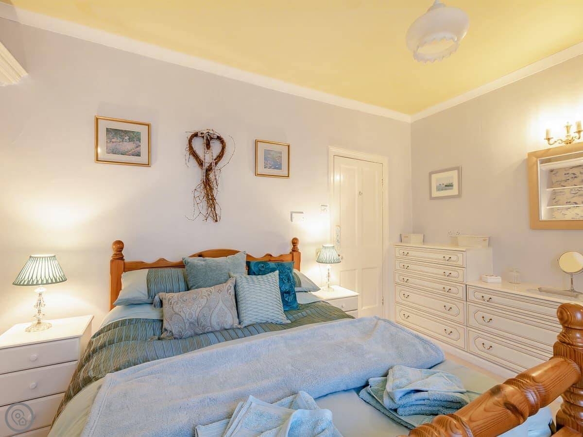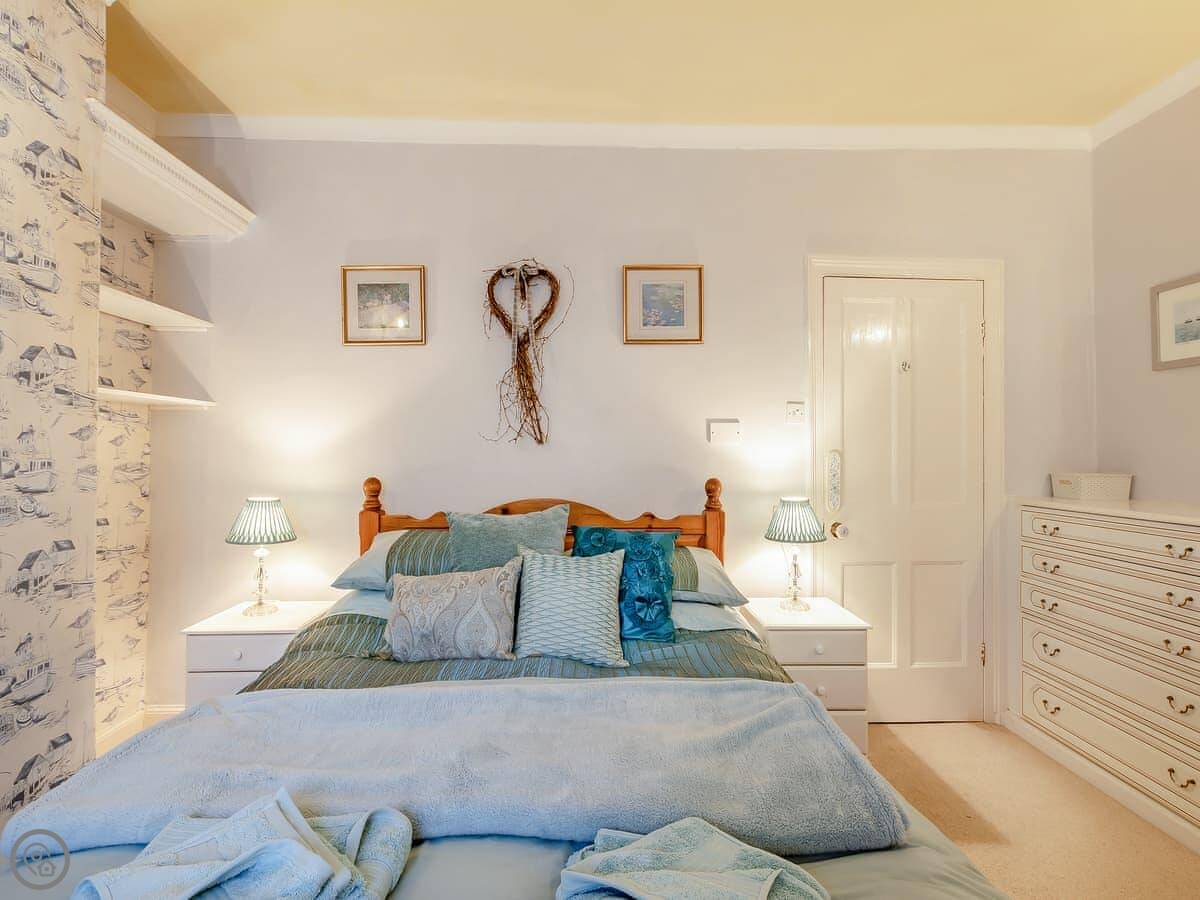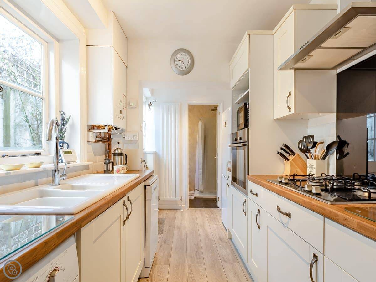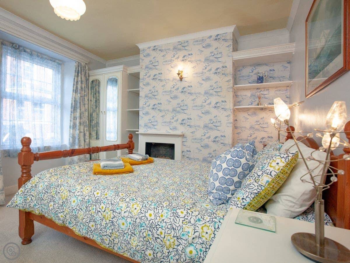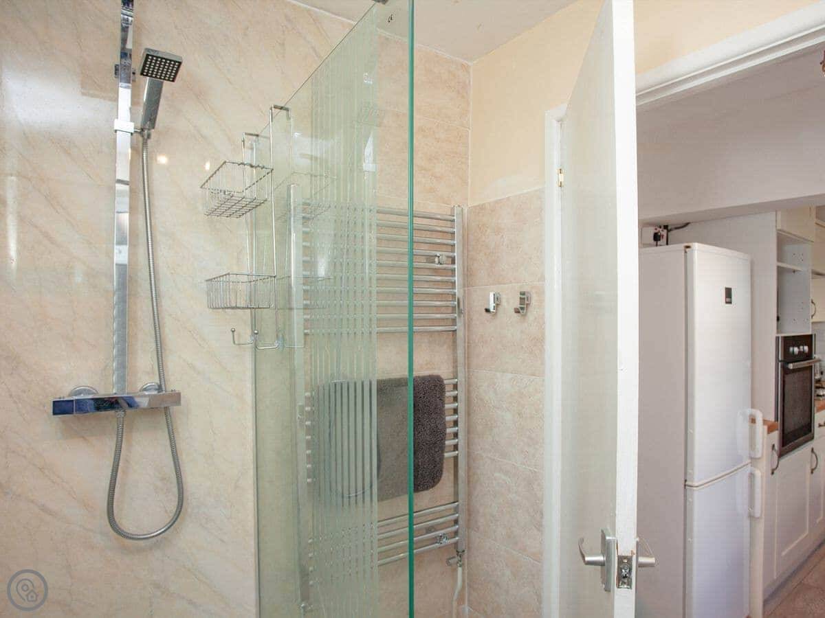 It sleeps six. Three bedrooms, two bathrooms. One bathroom has a bath, the other is a shower room downstairs. It's got a 4 Star rating, so it's well-equipped and comfortable. The stairs are normal, but there are a couple of extra steps up to the main bathroom from the landing.