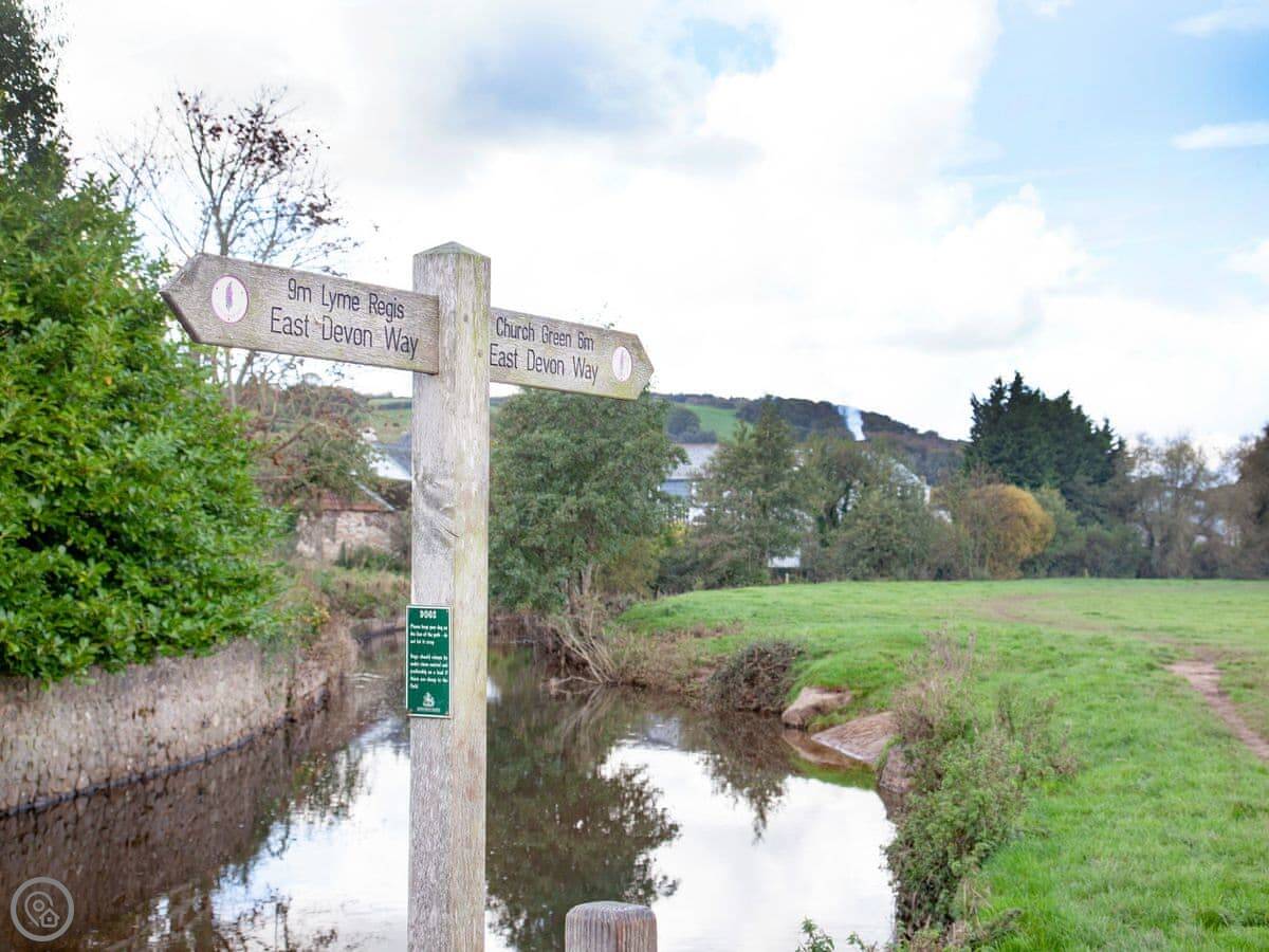 Other places nearby: Lyme Regis is about seven miles west, over the border in Dorset. Beer and Branscombe are lovely fishing villages, maybe a fifteen-minute drive. Axminster is about six miles north, where the River Cottage is. Honiton is known for antiques and is about a twenty-minute drive.