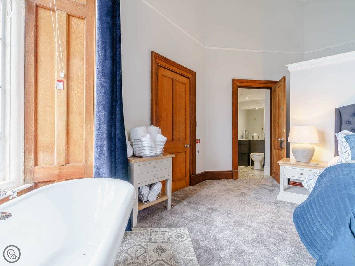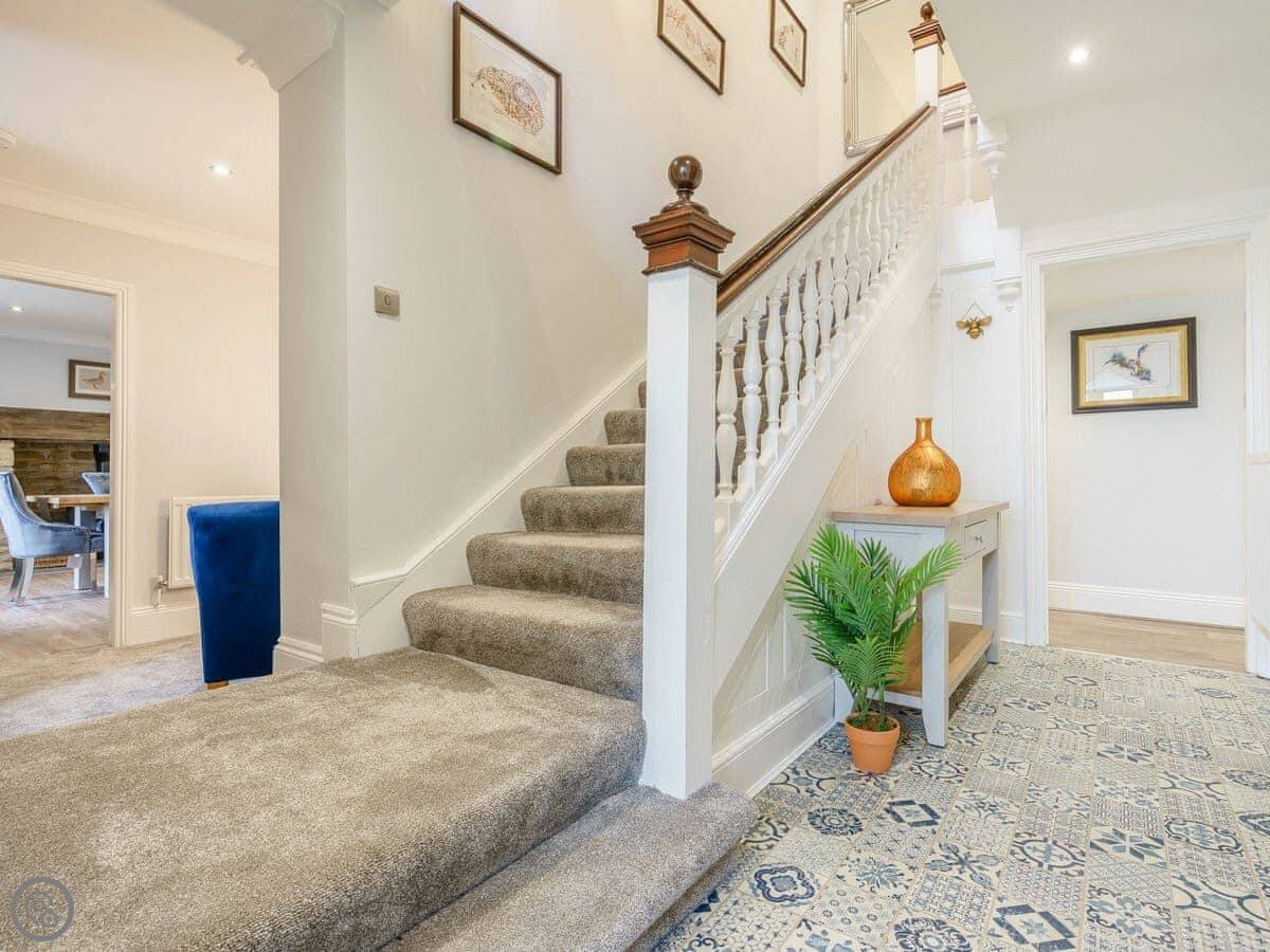 Whittle Dene Reservoir House is a Grade ll listed building, built in 1848 by the well-known architect John Dobson for the Gateshead and Newcastle Water Company. Originally the superintendent’s house, it stands proudly on the banks of the reservoir with uninterrupted views from all windows. Built in Tudor style with a two storey octagonal tower, and grand features throughout, the property is truly unique in every way. This property is luxurious and full of character, and is the ideal place to stay for families, friends and special occasions. With a shaker style kitchen, impressive gas fueled range, full range of electric appliances, De’Longhi accessories and a Nespresso coffee machine for your early morning coffee. Separate utility with washer and dryer, and ample room in the entrance lobby for those muddy boots and coats. Both the dining room and living room have fabulous views across the reservoir, with a welcoming wood burner set in an inglenook fireplace in the dining room, perfect for cosy nights around the table. There is an additional snug with armchairs, Smart TV and PlayStation4. Downstairs is the family bathroom with large bath and overhead multi-jet shower. Upstairs there are three bedrooms, the master bedroom with kingsize bed, and a wonderful roll-top bath sits perfectly in the window to take in the extensive views and Northumbrian dark skies. There is a walk-in dressing room and en-suite toilet, feature fireplace, 55” Smart TV and dressing table. Outside there is a gated entrance, graveled driveway suitable for three vehicles. A large enclosed garden sits at the water’s edge, a beautiful and tranquil spot. With patio area and garden furniture with BBQ space and a fabulous hot tub to relax and re-charge.