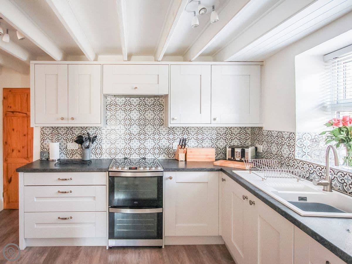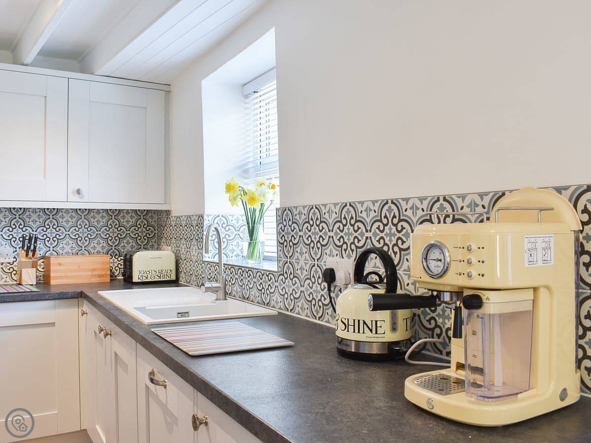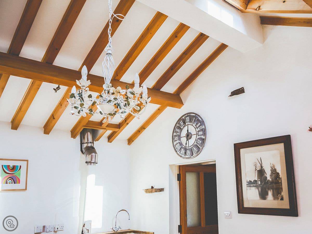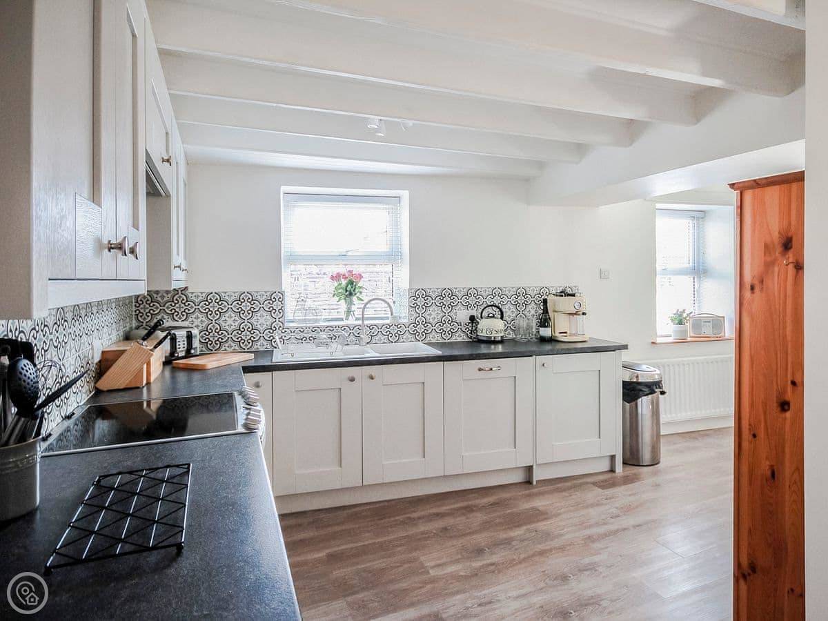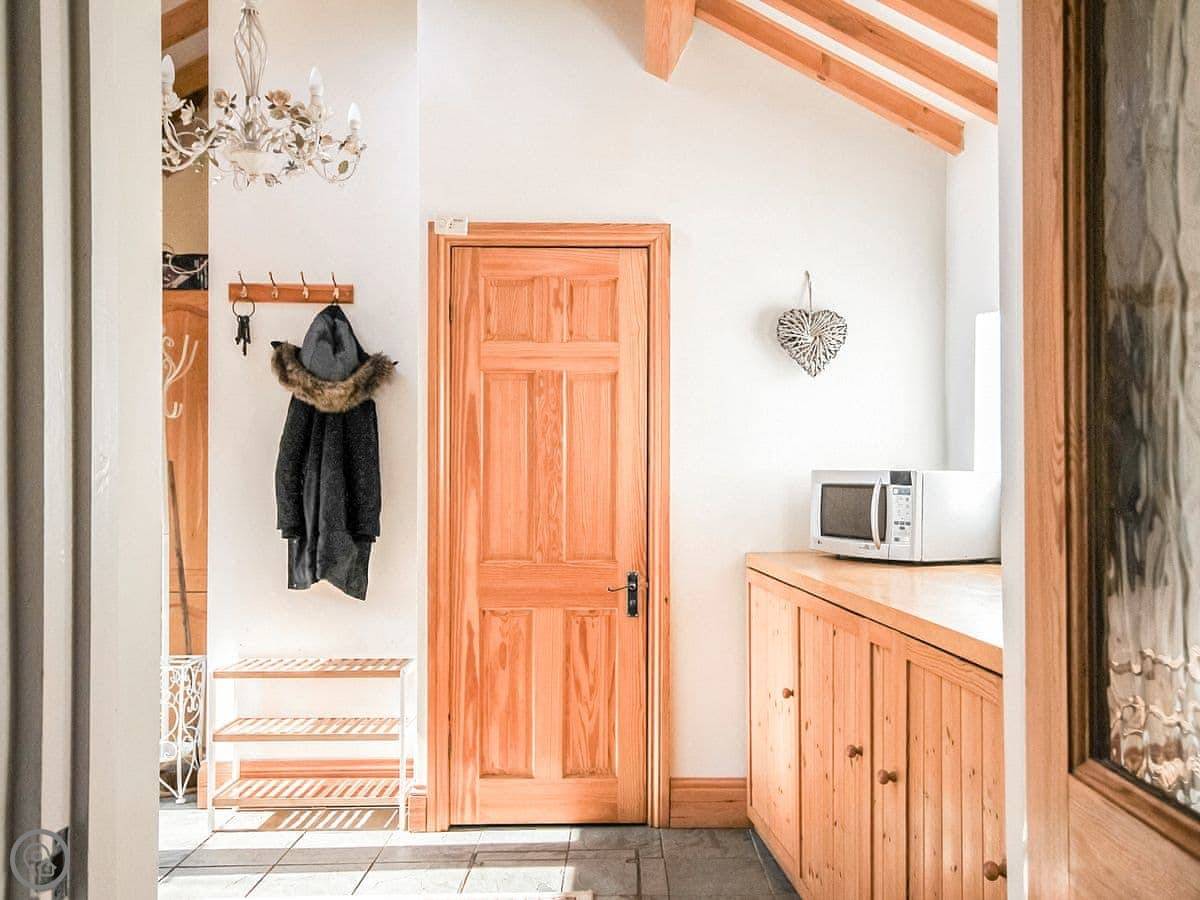 There's a main lounge with a wood burner and a smart TV with Netflix. Then there's another little snug with another TV, a Wii, and games. Good if people want to do different things. There's a garden room out the back that we use for eating, and it has the washing machine and things in it. It's a nice light room. The kitchen is fine, you've got everything you need.