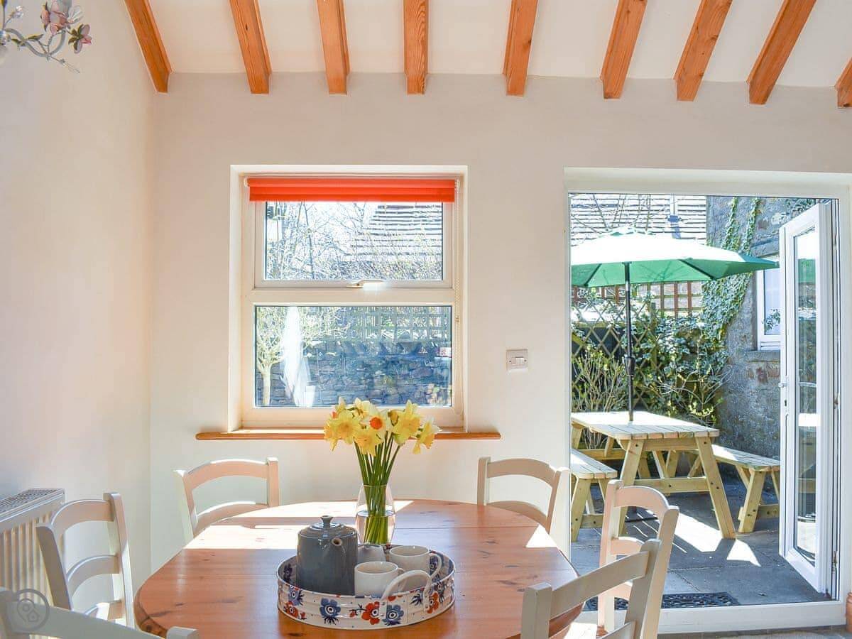 Syke Cottage is in Bainbridge, right near the green. It's detached. It looks old, and it is, from the 1700s. But it's bigger inside than it looks.