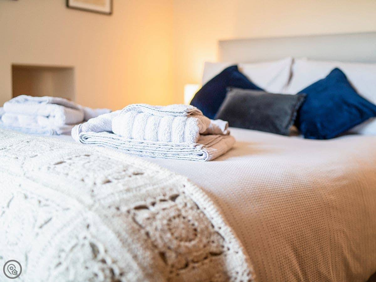You can bring two dogs. Bedding and towels are included. There's a cot and a highchair if you need them.