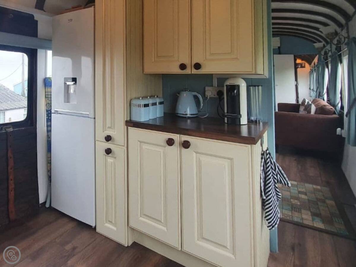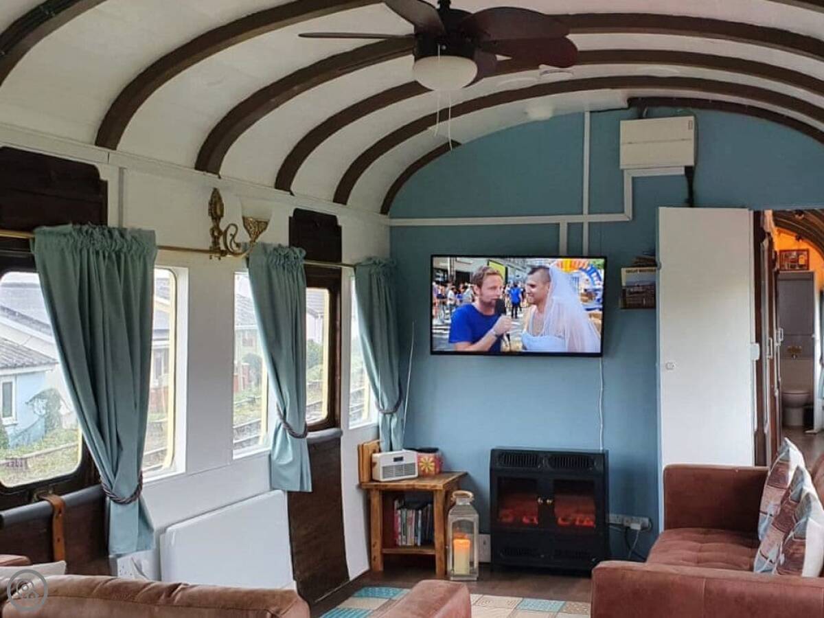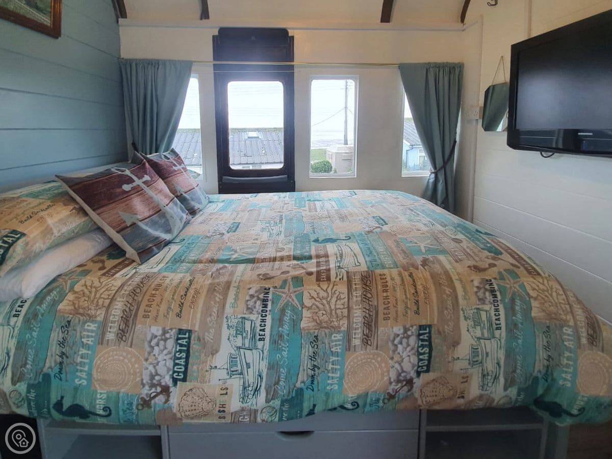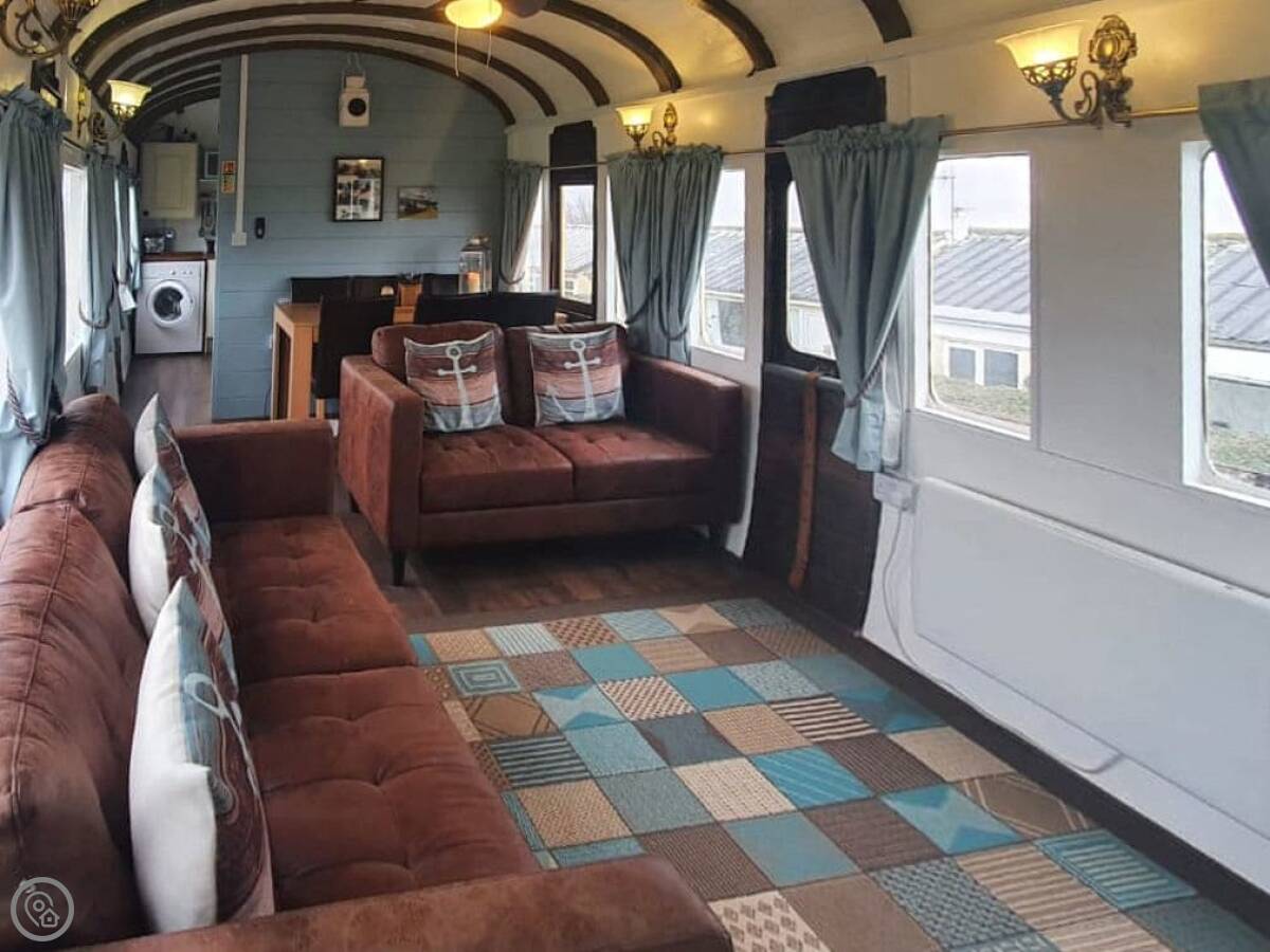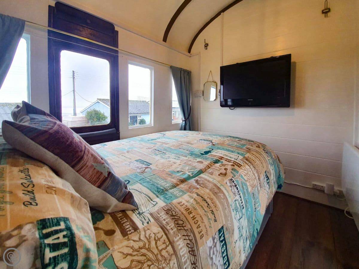 This is Elsie. It's an old railway carriage in Blue Anchor, right by the sea. It faces the beach and the West Somerset Railway line, so you get a view of the sea and the steam trains going past. It's detached, so it's just you in it.