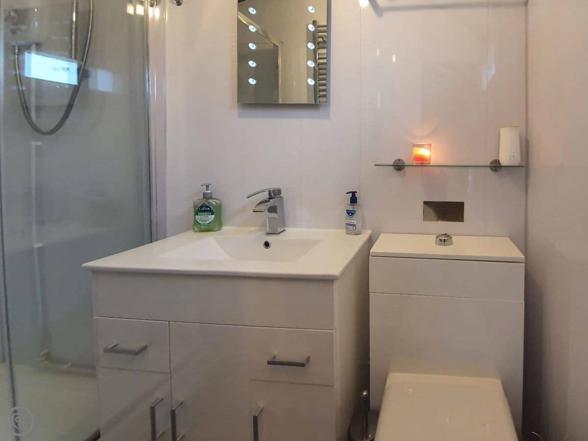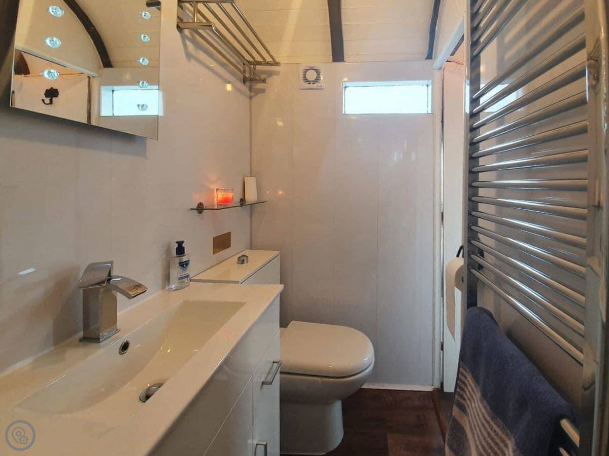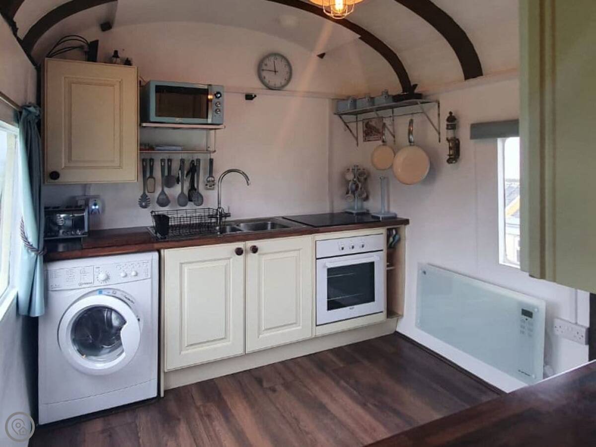 Inside, it's got a woodburner, WiFi, a TV, a washing machine, and an Xbox in one of the bunk rooms. All bedding and towels are included. You can bring up to two dogs.