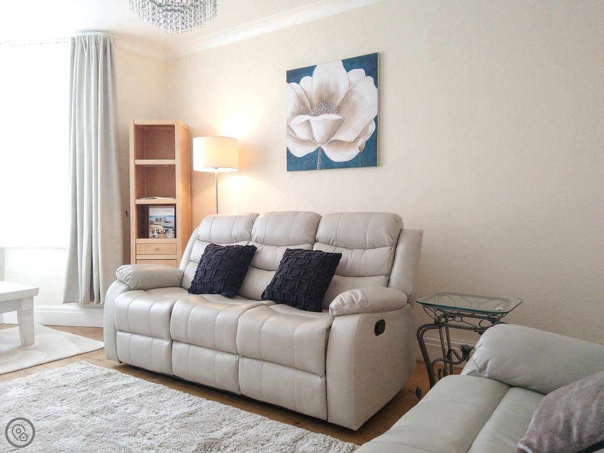 This ground floor apartment is immaculately presented with comfort in mind. The spacious peaceful living room is a great spot to relax and chat about the days adventures. There’s lovely quality beds with crisp linen, you’re sure to be guaranteed a great nights sleep, there is a well-equipped kitchen with everything you’ll need for a weeks stay. Outside is a spot to sit and watch the world go by and hopefully soak up some sun.