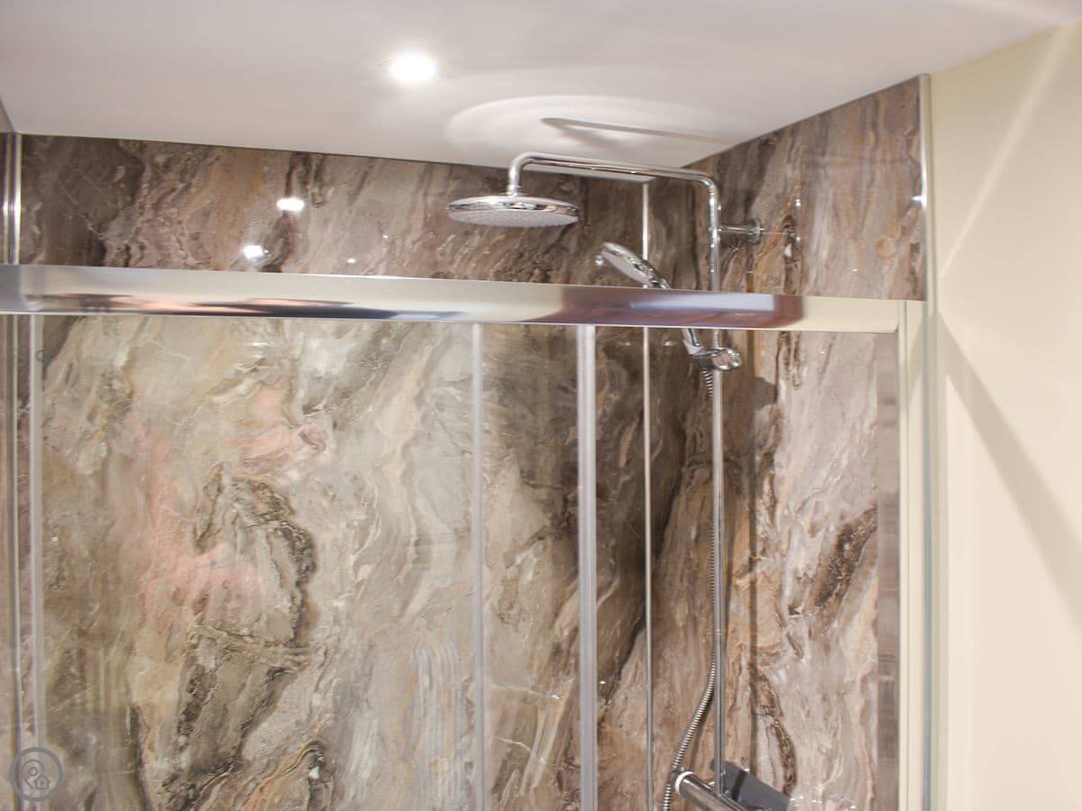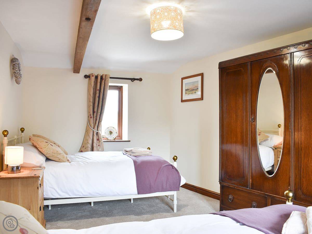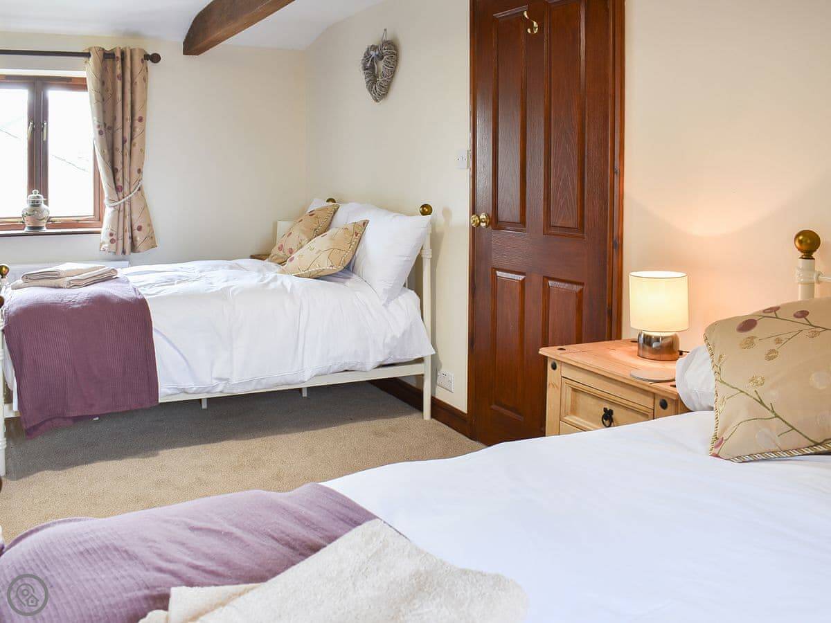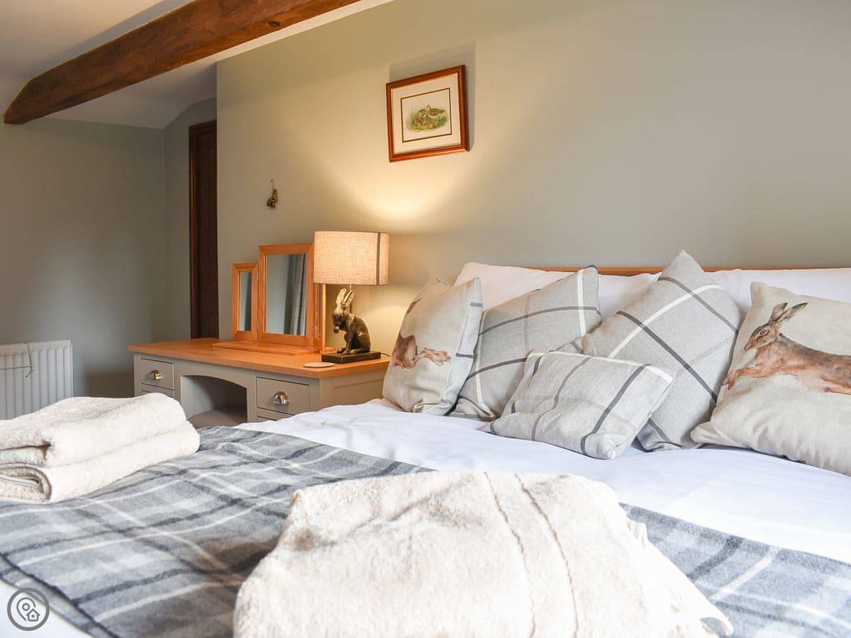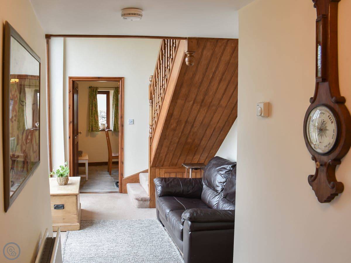 It sleeps six. Three bedrooms, two bathrooms. One of them is downstairs. It's got a 4 Star rating. It's been done up well, so everything works and is clean. The stairs are fairly typical for a barn conversion, so they're not steep but they are open tread.