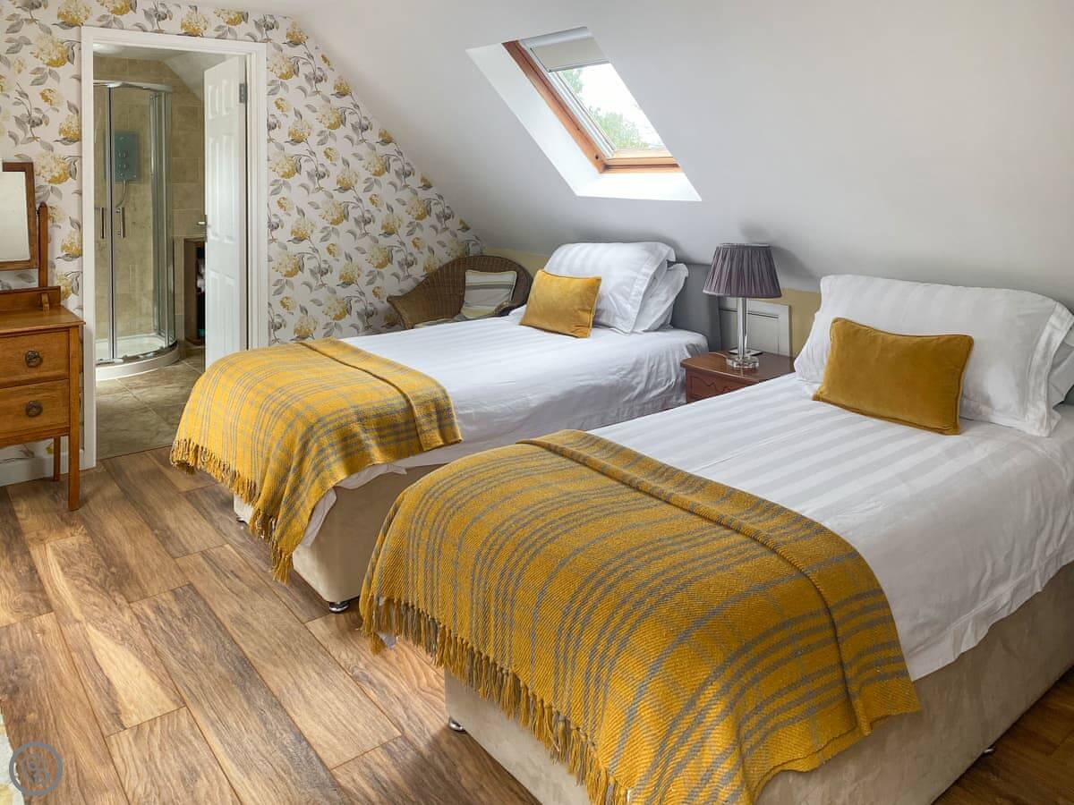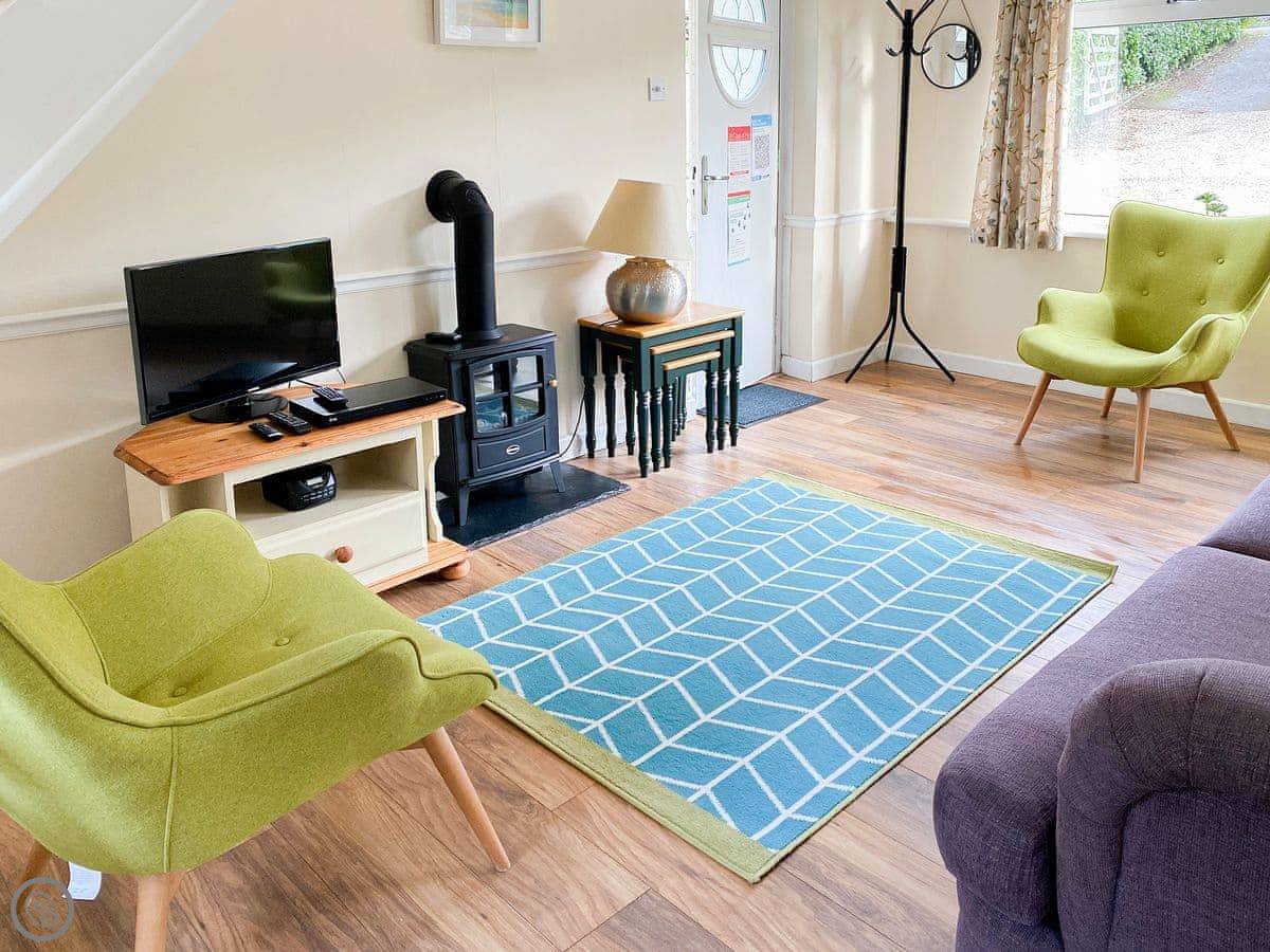 There is a spacious and light-filled open plan living space, with a fully fitted kitchen, a comfy 3-seater sofa and funky armchairs. There is also an electric wood burner for cosy nights in and a Smart TV offering Netflix and Amazon Prime. The kitchen area has ample work surfaces for dishing up culinary delicacies, whilst the dining area is perfect for sociable gatherings with friends or family. Upstairs, the bedroom is spacious and has been decorated with Laura Ashley wallpaper and fabrics. It features a super kingsize zip and link bed with sumptuous 400-thread count linen. The stunning bathroom has a separate claw-footed roll-top bath which is under the roof light, from which you can view the starry skies, and a curved shower cubicle.
