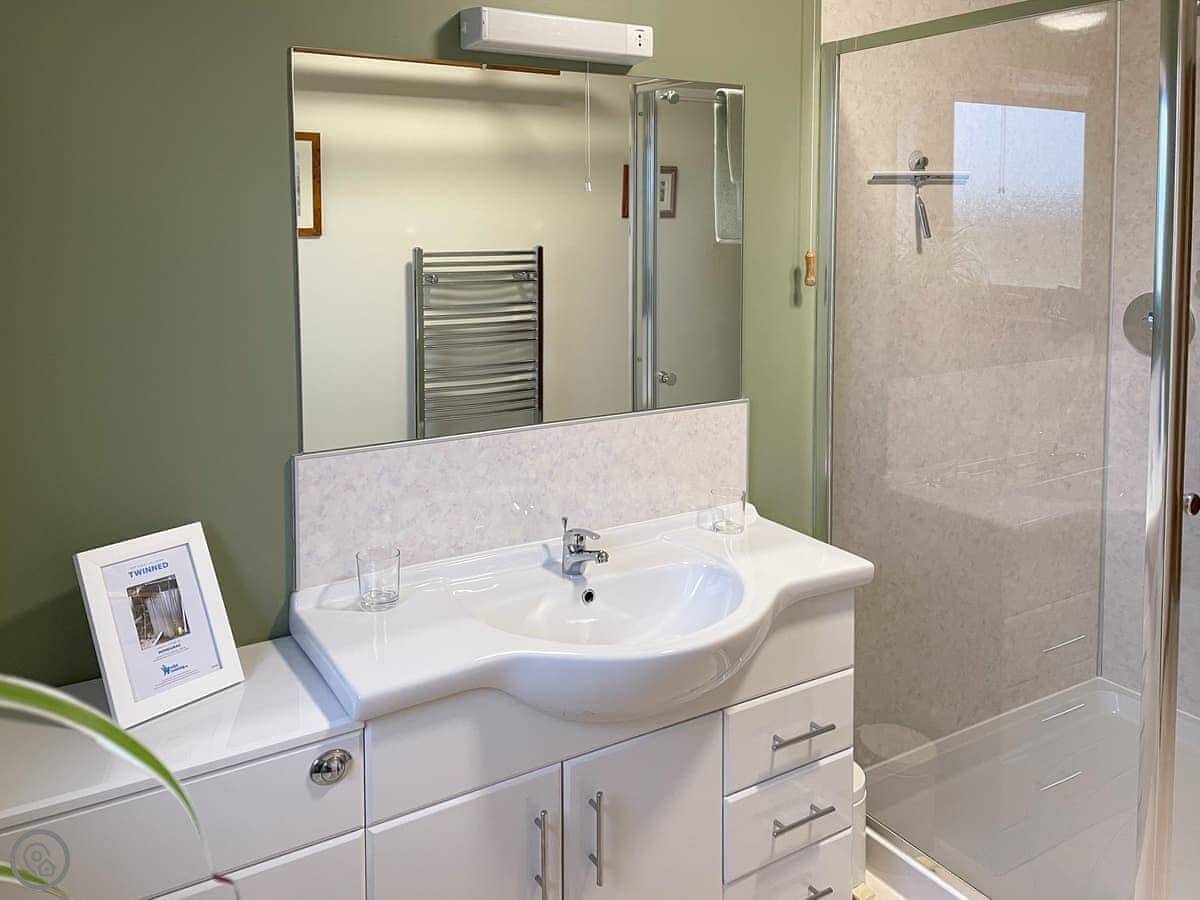 It sleeps four. Two bedrooms, one bathroom. Both bedrooms have zip and link beds, so you can have doubles or twins, whatever you need. It's got a 4 Star rating. It's well kitted out.
