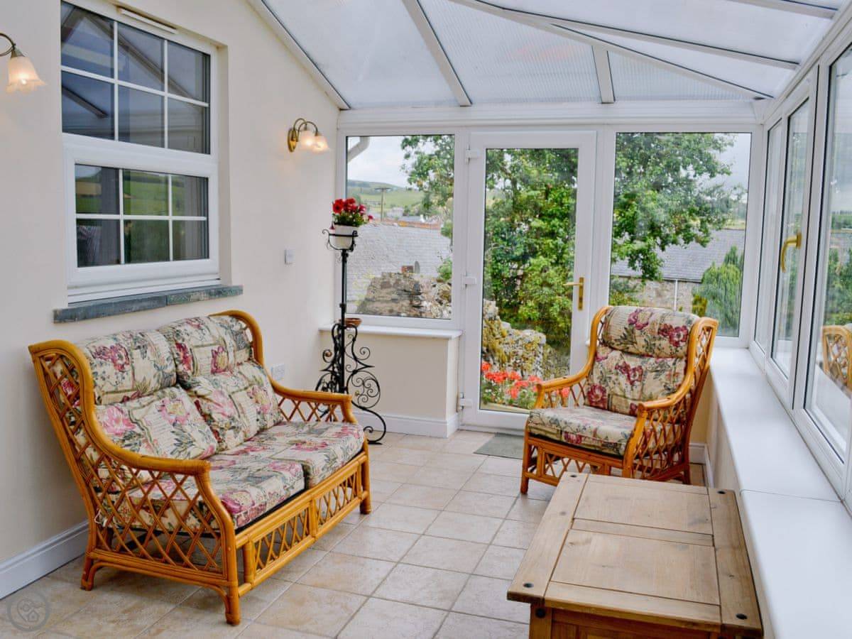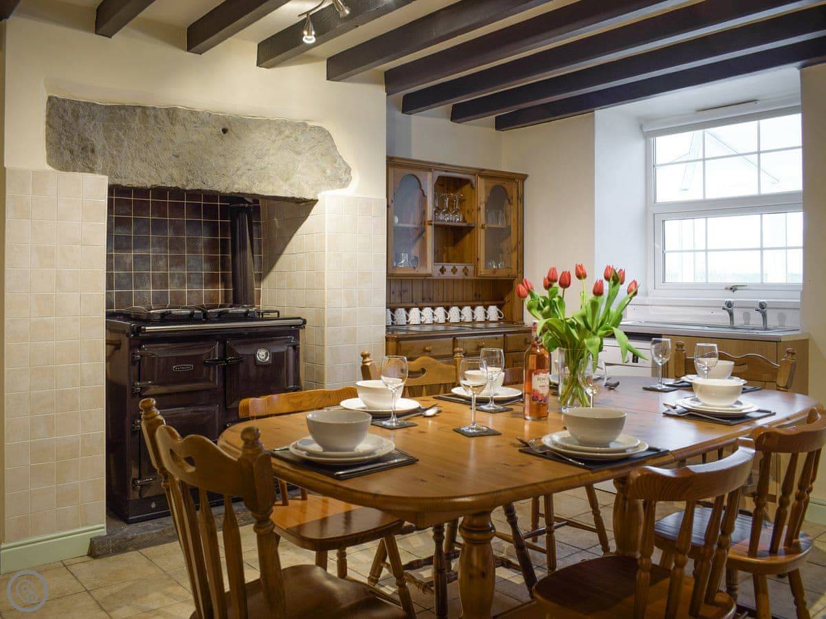 Dating back to 1560, this holiday property, attached to the owner’s home on a working farm has some attractive features. There is an inglenook fireplace with an open fire in the cosy living room, two kitchens and a conservatory overlooking the farm and surrounding countryside. Just off the A5 and within walking distance of the village pub, shop and two eateries in Cerrigydrudion, Groudd Hall Cottage makes a great central base for exploring the area. There is fishing within 5 miles, and close by are the sparkling waters of Llyn Brenig Lake, with all sorts of water-based activities, whilst there are plenty of walks from the doorstep. Betws-y-Coed, the ’gateway to the Snowdonia National Park’ is only a few minutes away by car, whilst in the other direction, Llangollen, home to both the International Eisteddfod and the Llangollen Railway, is well worth a visit. Shop, pub and restaurant 1 mile.