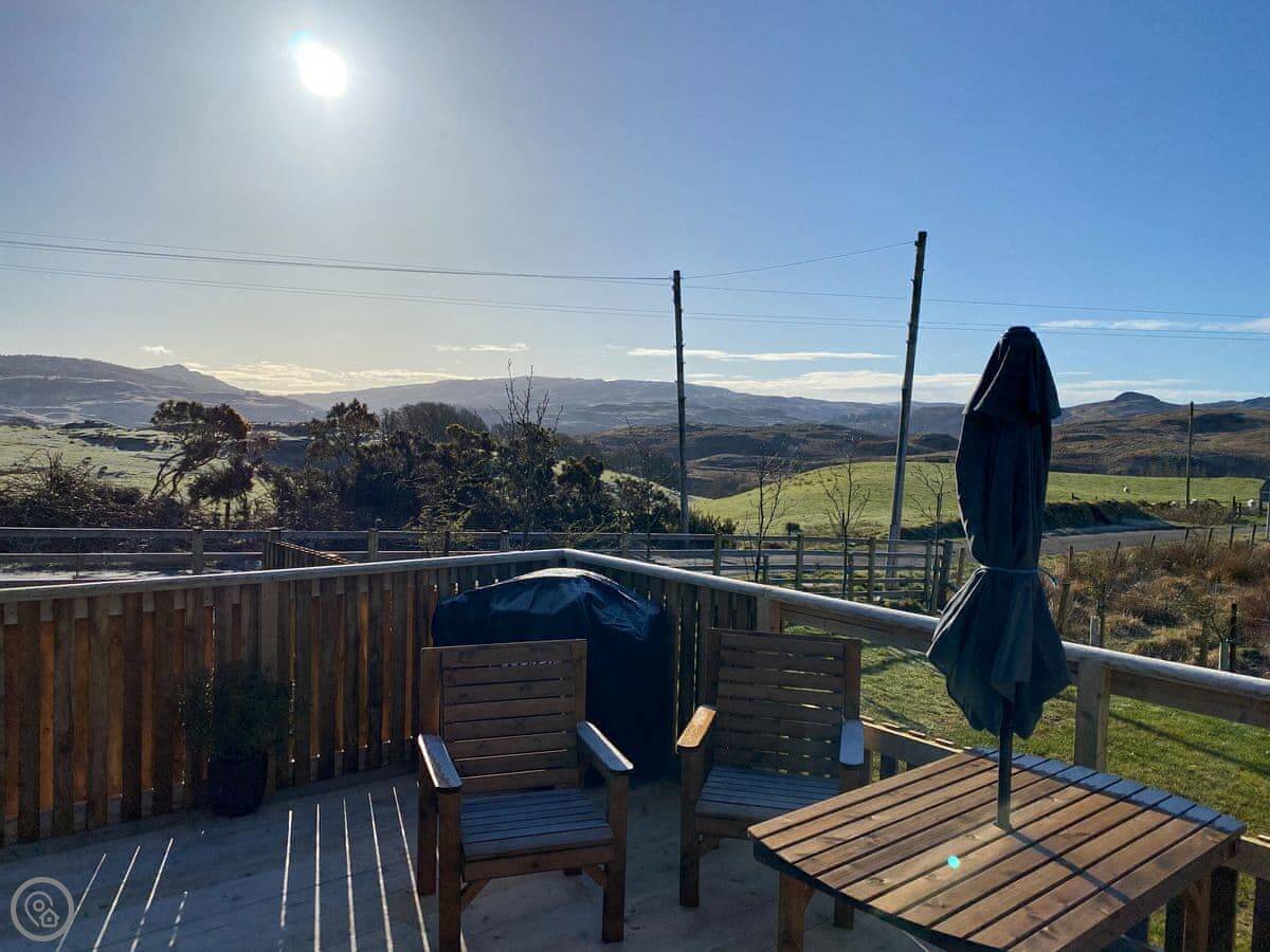 The track it’s on is part of National Cycle Route 78. You can walk or cycle from the door. The view from the deck looks out over Glen Lonan.