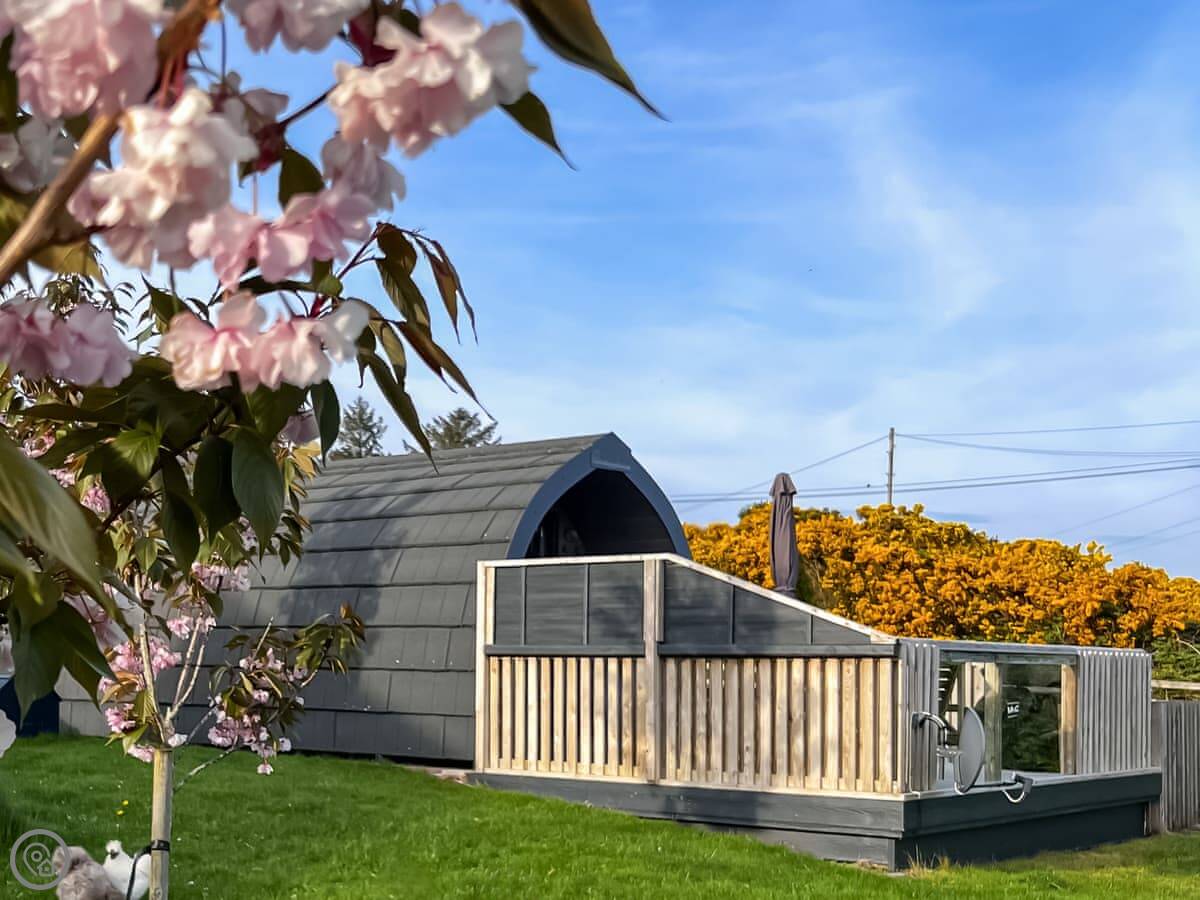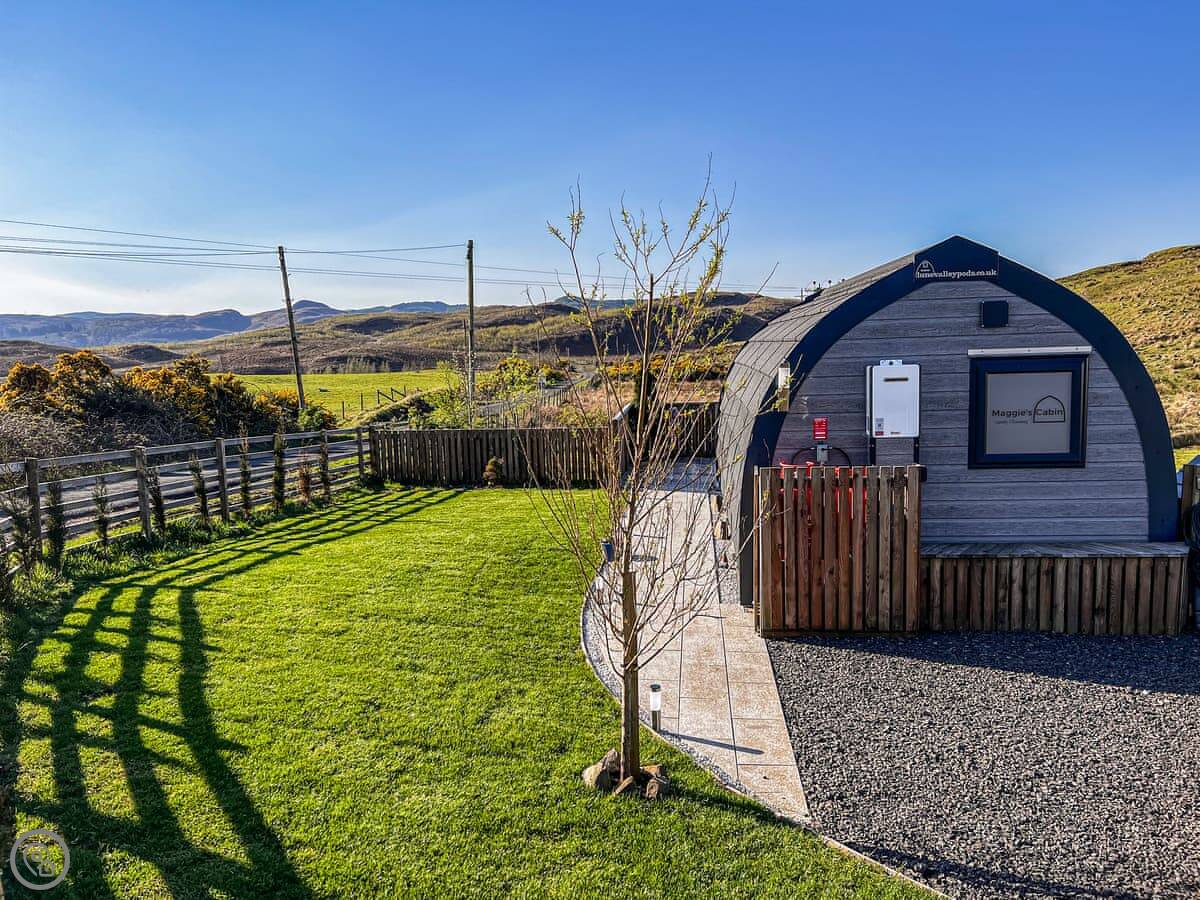 Maggie's Cabin is near Oban, up a track in a quiet glen. It's a timber pod, detached, for just the two of you. It faces south so it gets the sun all day. You get your own enclosed bit of decking out the front.