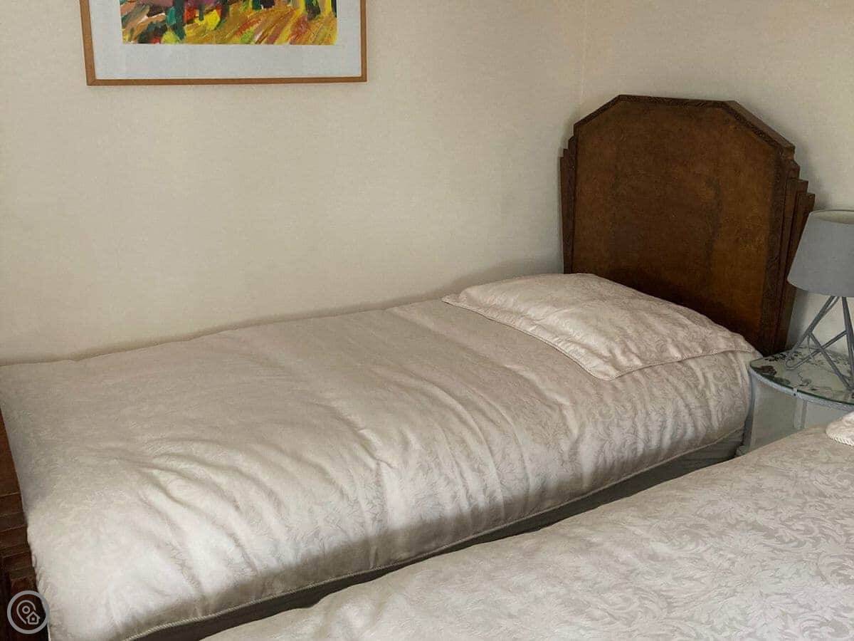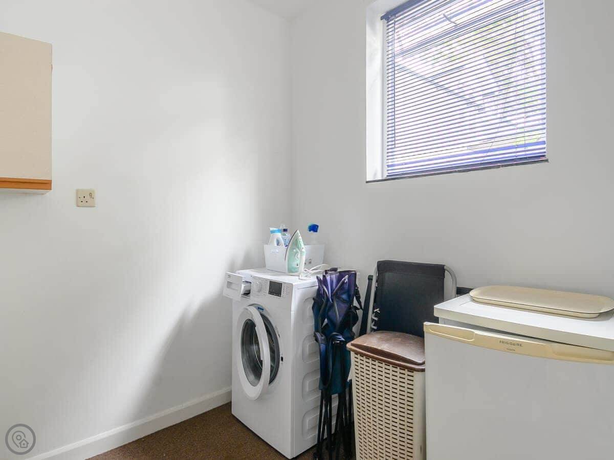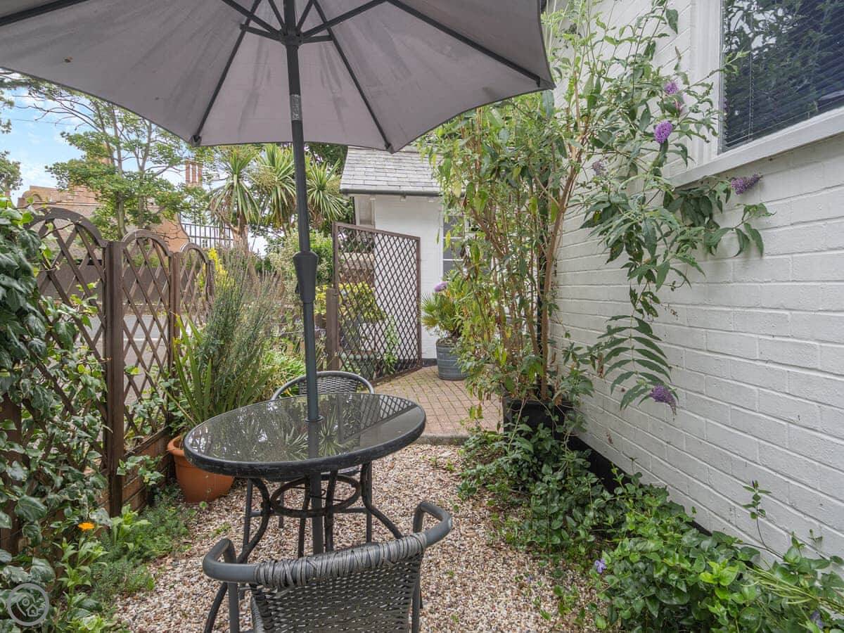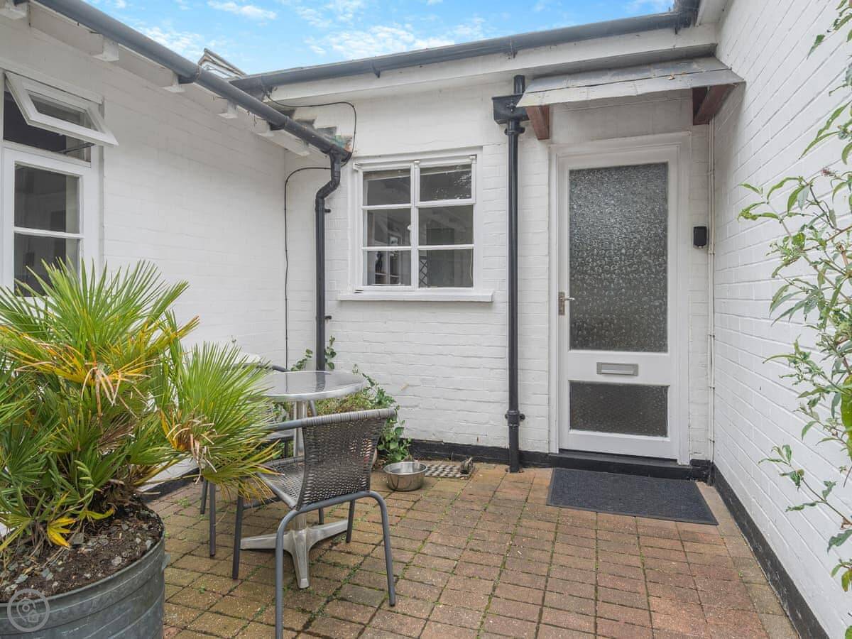 Facilities included are a washing machine, TV, WiFi, and bedding and towels. There's a small patio garden at the back.