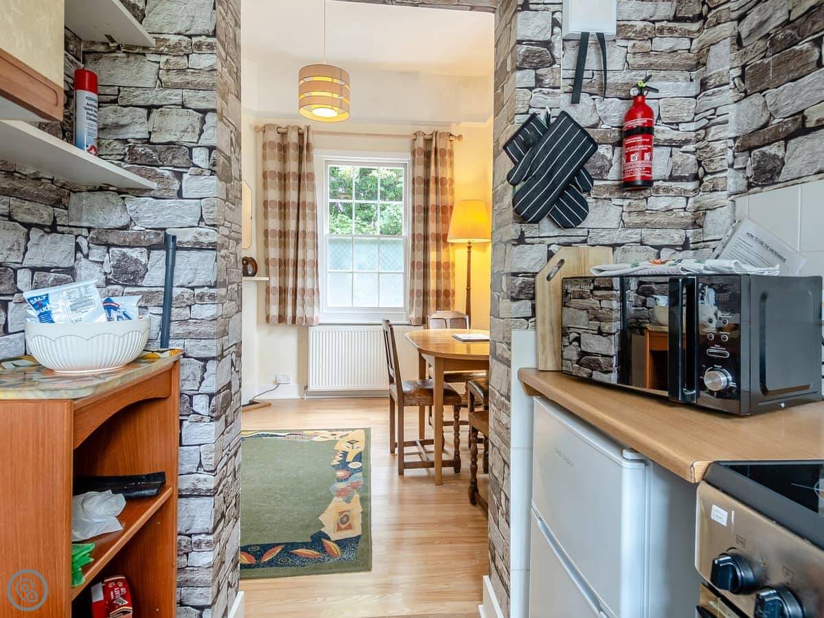 You can walk into the town centre. There are shops and restaurants. There's a pub that does food a few minutes walk away.