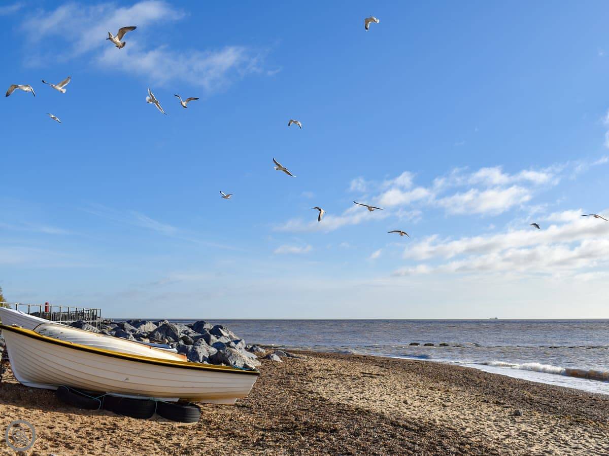 Sea View Cottage is in Felixstowe, on the seafront. It's a two-bedroom bungalow, so everything's on one level. You can see the sea from the front windows. The beach is about fifty yards away.