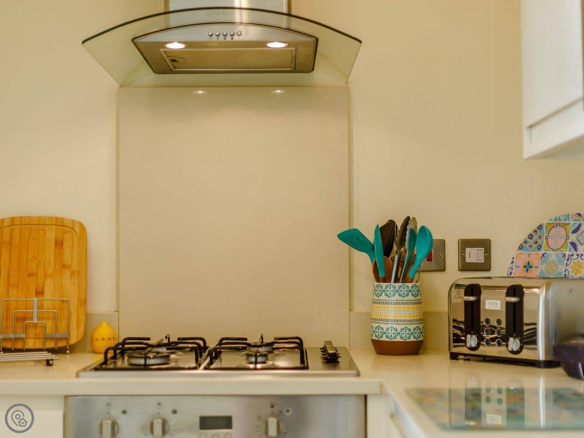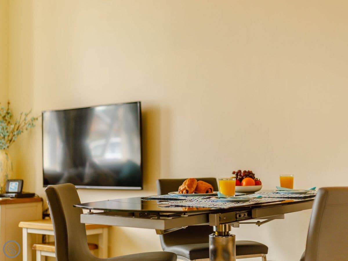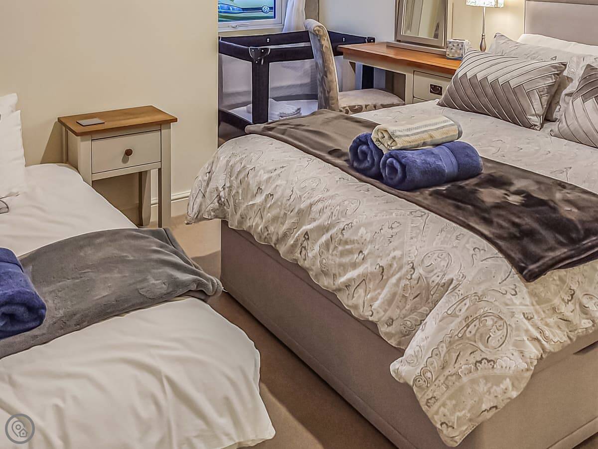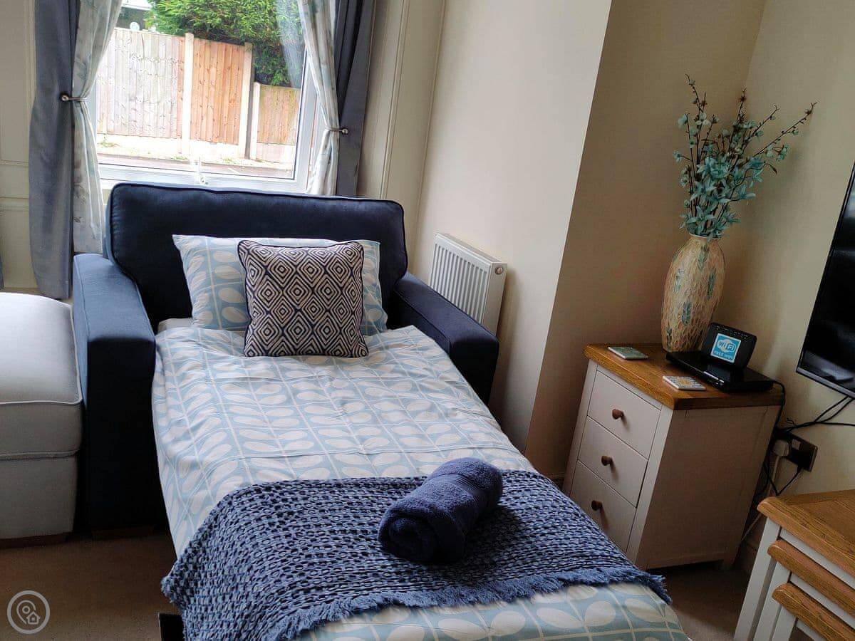 Facilities are all included: bedding, towels, WiFi, TV. There's a cot and a highchair if you need them. No pets.