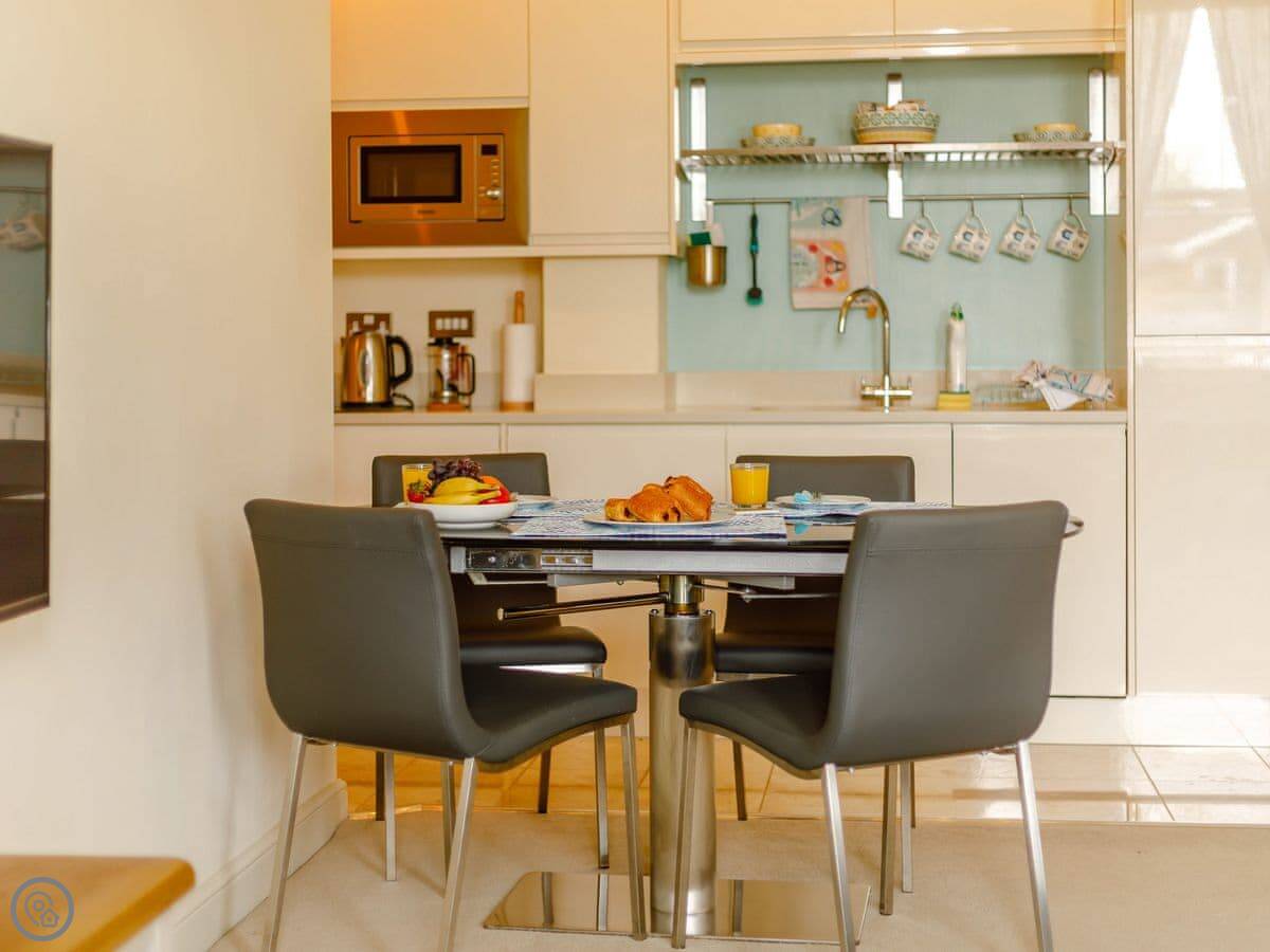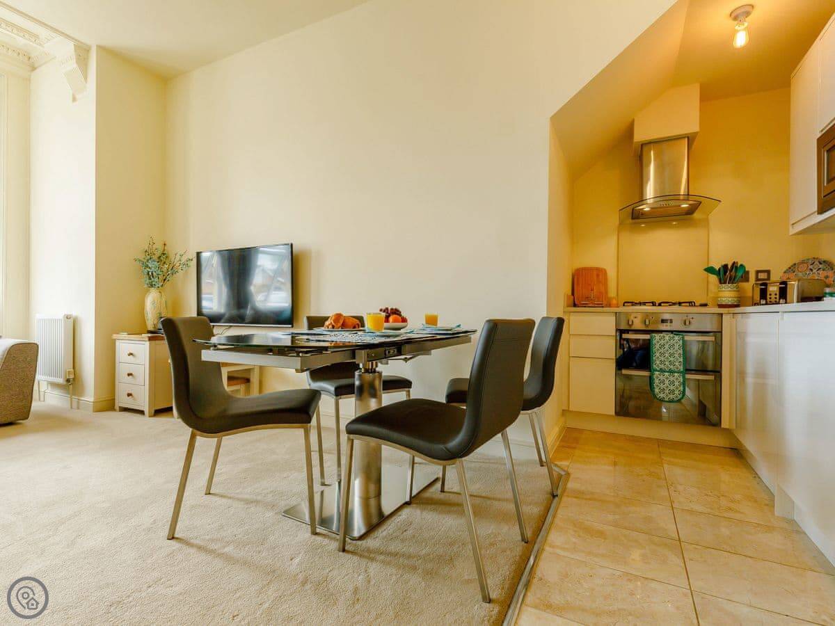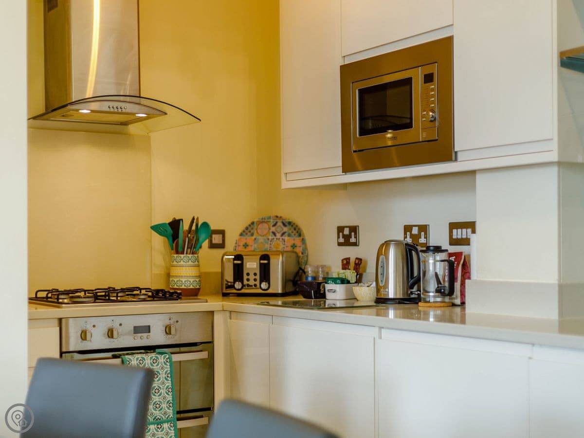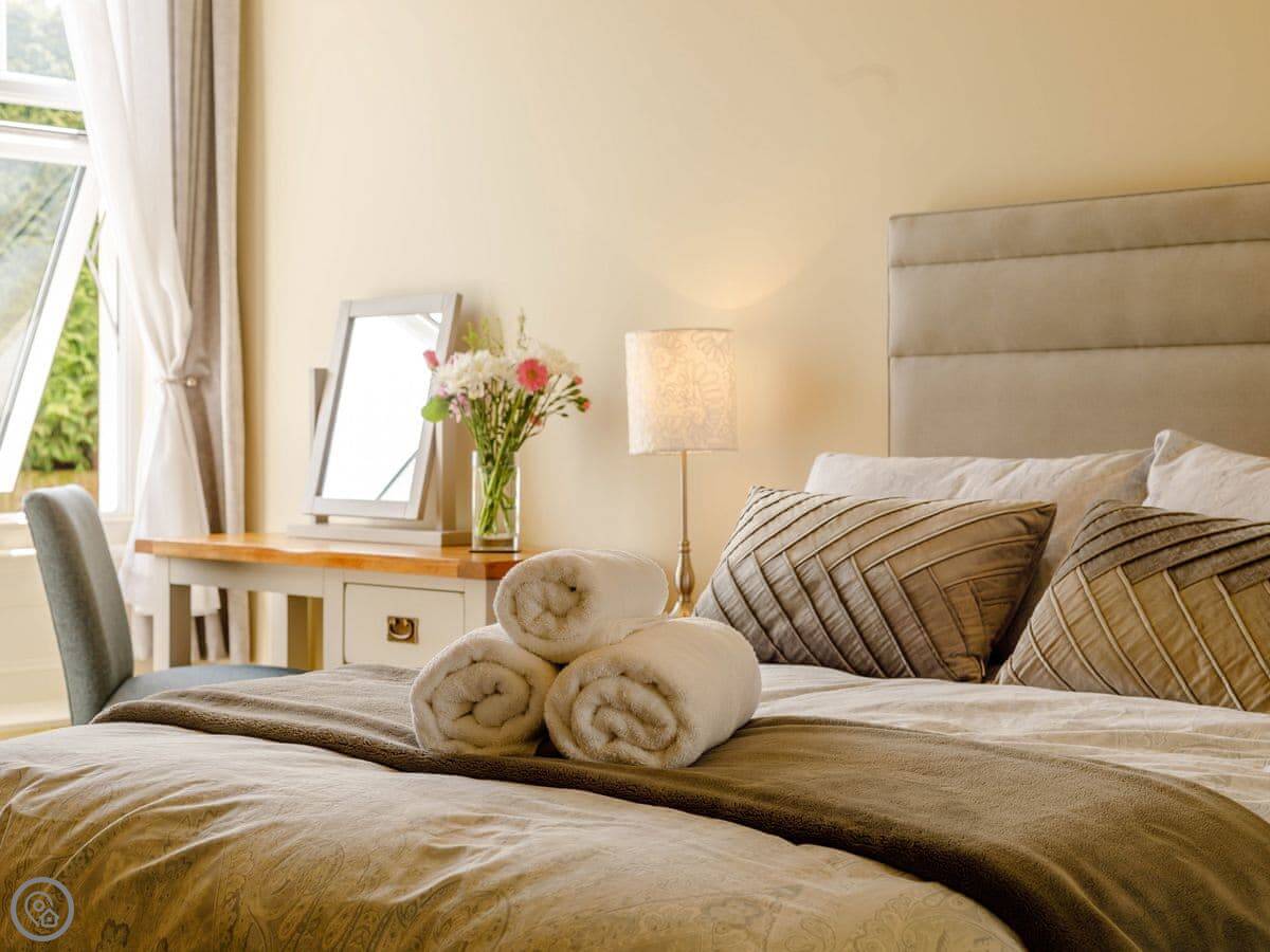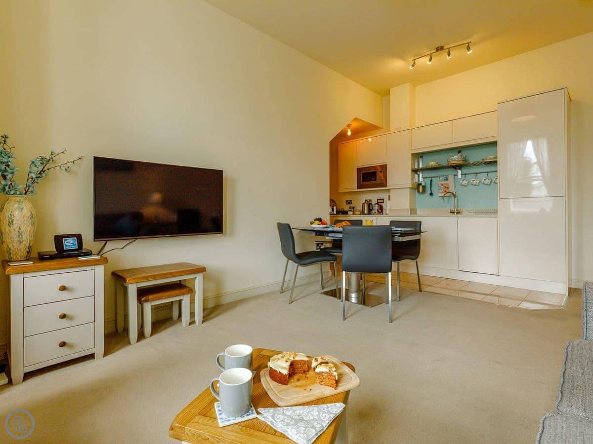 Facilities are all included: bedding, towels, WiFi, TV. There's a cot and a highchair if you need them. No pets.