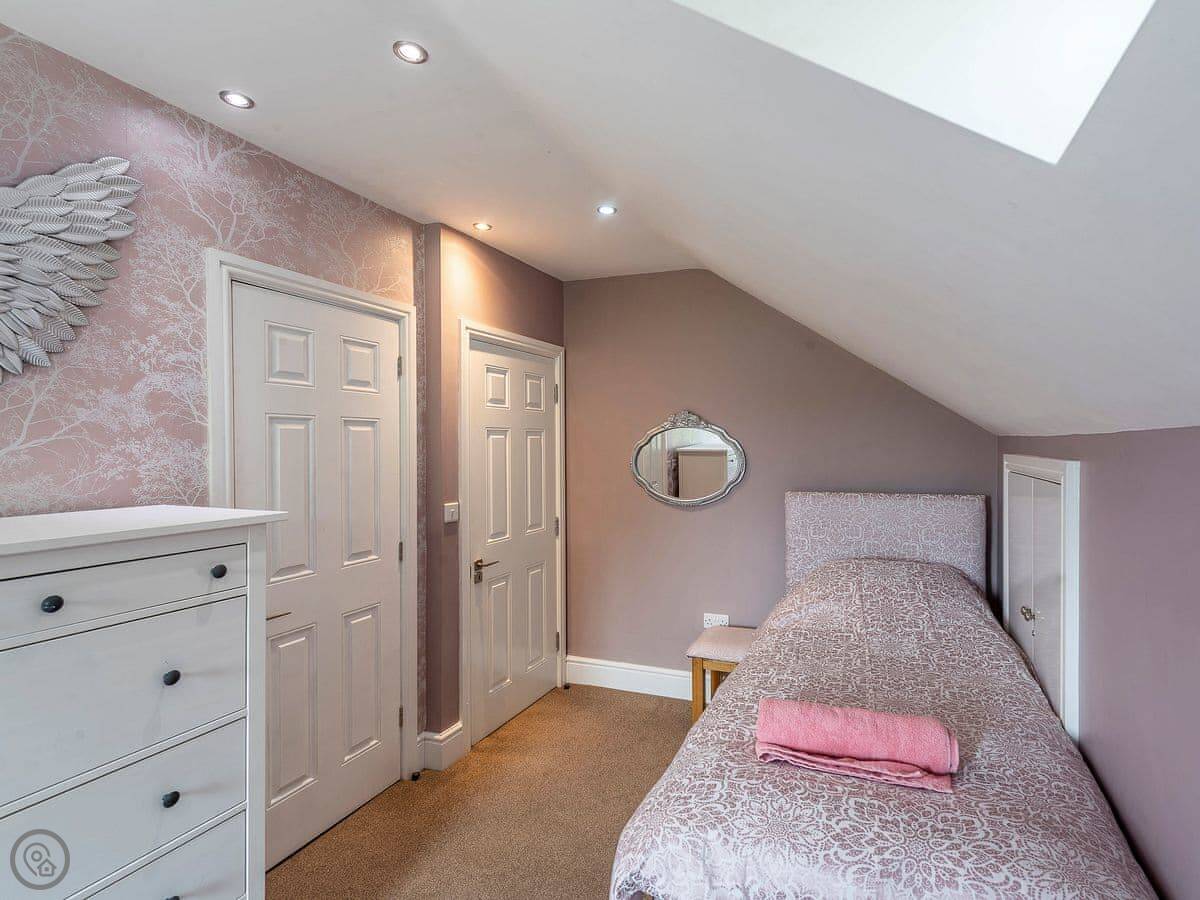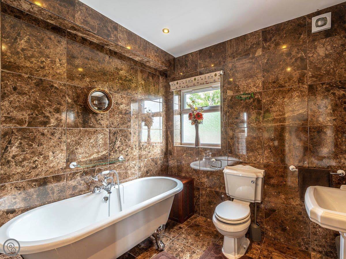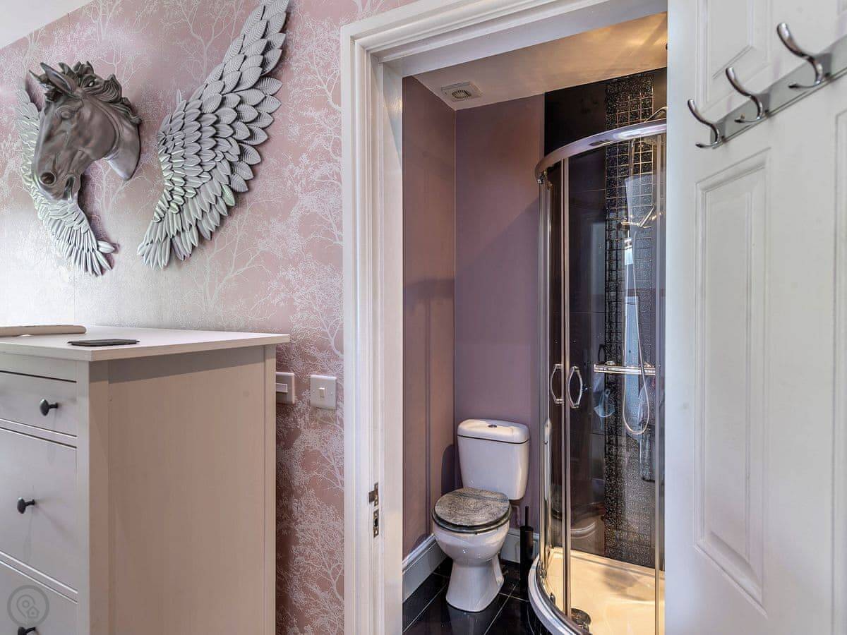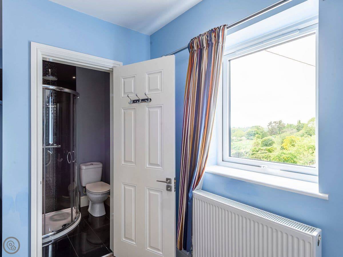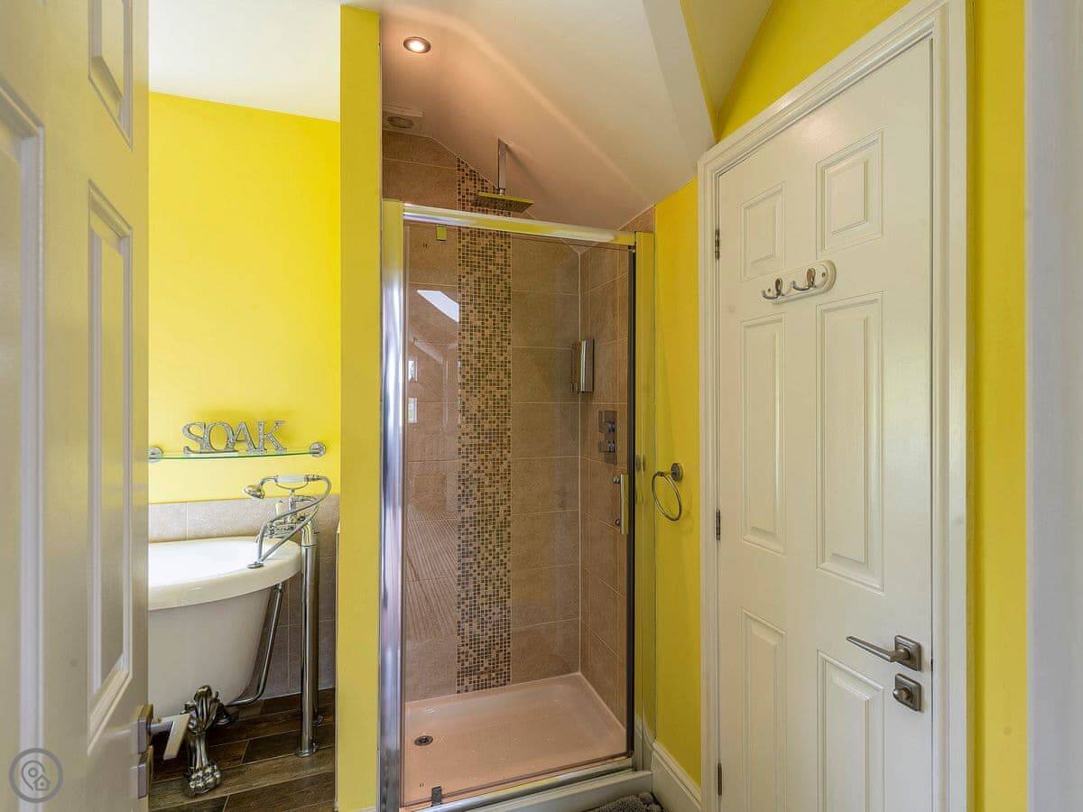 Inside, the stairs are fine, but they’re a typical house staircase. The main bathroom has a roll-top bath. Three of the bedrooms have their own shower rooms.
