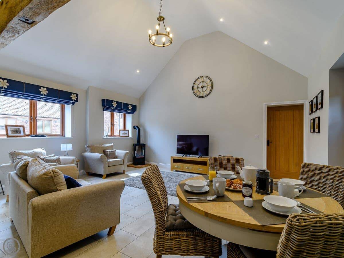 It's quiet here. You're on a working farm, so you'll see the fields but it's not noisy. There's a washing machine, dishwasher, Wi-Fi, and a smart TV so you can log into your own Netflix. Bedding and towels are included.