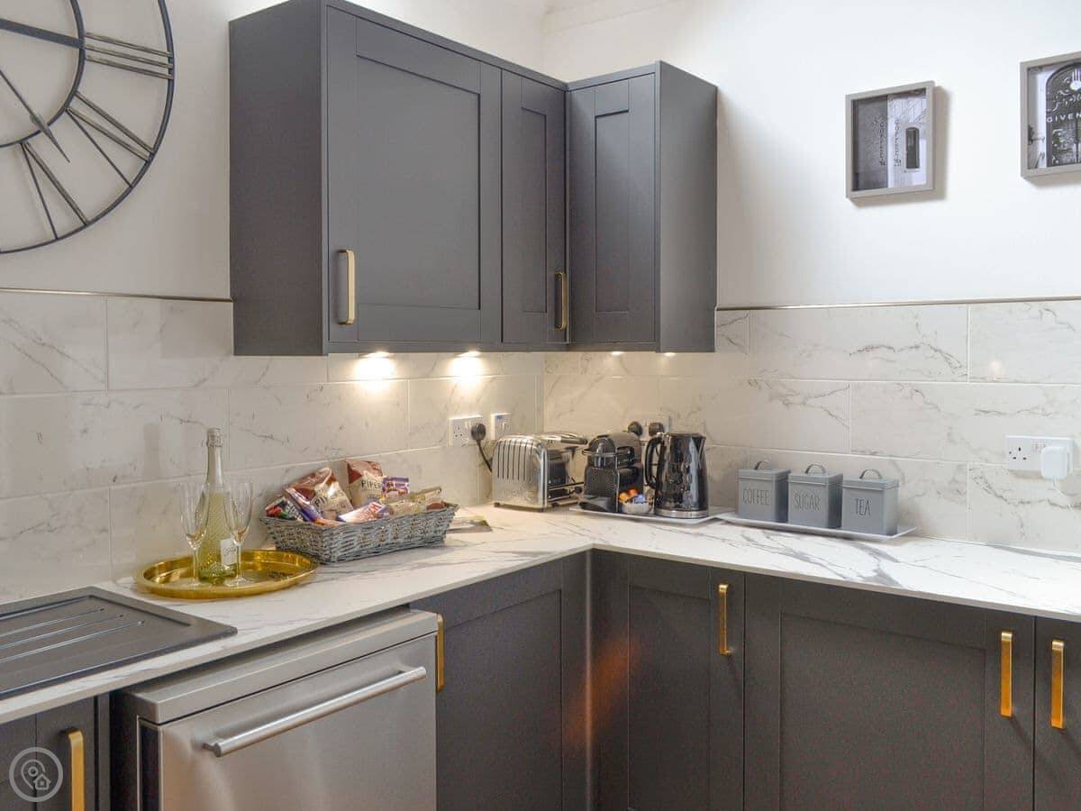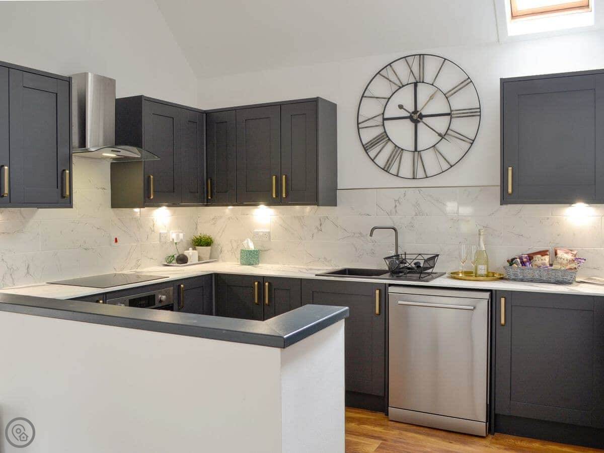The Roundhouse offers a boutique experience and is a delight, a perfect bolthole for couples wanting to recharge their batteries. The living room and bedroom are on the first floor, a spacious open plan area with Sonos sound system, Smart TV and super comfy sofas where you can sit and look over the tree covered hills on the other side of the valley. It takes its name from the remains of the original building which was here and the private garden at the rear is where you will want to spend your evenings relaxing after climbing the hills, cycling or doing any of the other outdoor activities for which the area is renowned.