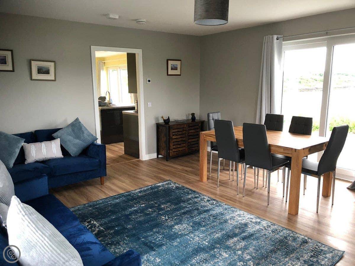 It sleeps six in three bedrooms. There are two bathrooms. It's got a 4 Star rating, so it's comfortable and well looked after. Everything is on one level, which is good if steps are a problem. There's a wood-burning stove for cooler evenings.
