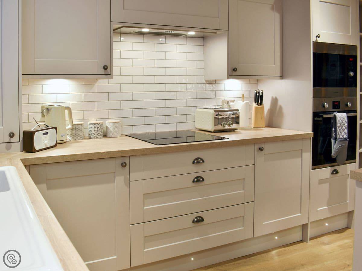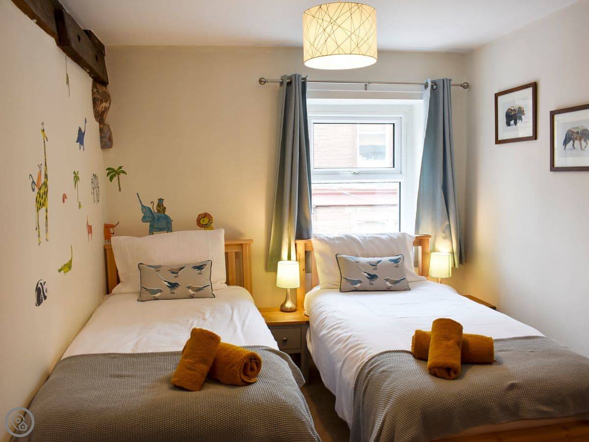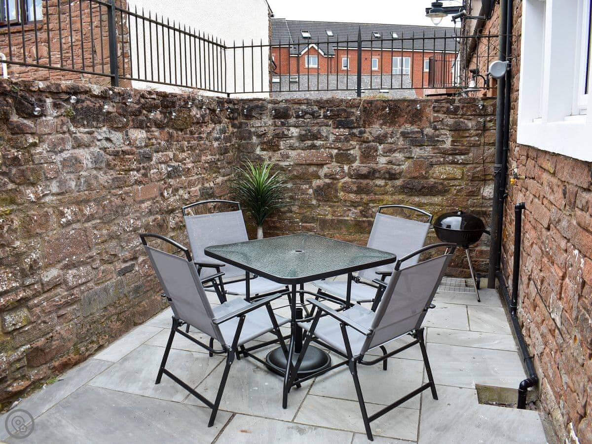 The house has a small patio garden out the back with a barbecue. Inside, it's all open plan downstairs. There's a proper kitchen with a dishwasher and a washing machine. We've put in a cot and a highchair. The WiFi works fine. It's got a 4 Star rating.
