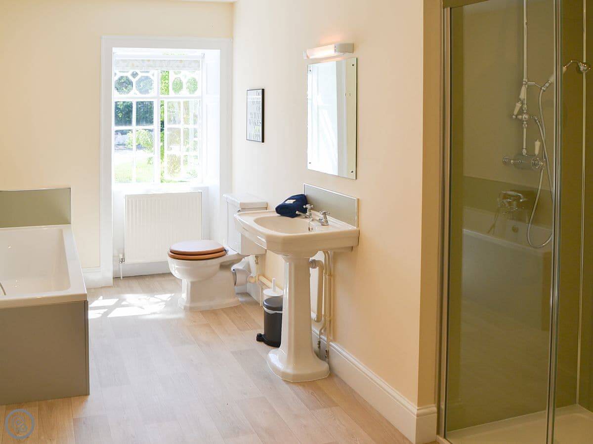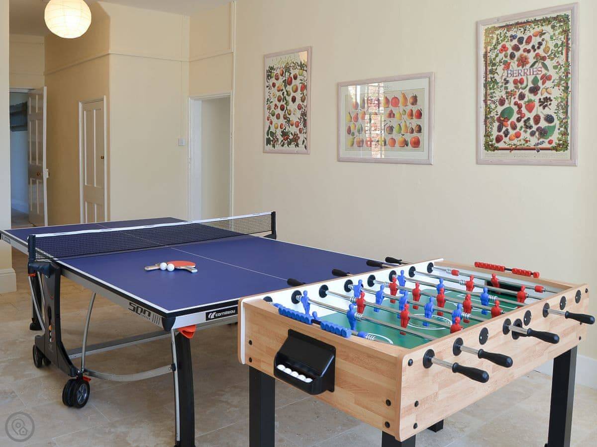 It was built for farm managers, so the rooms are big but the stairs are fairly standard, not those tiny cottage ones. There's a games room with table tennis and table football. You can also use the owner's hard tennis court, which is a bonus. We've put a hot tub in the garden.