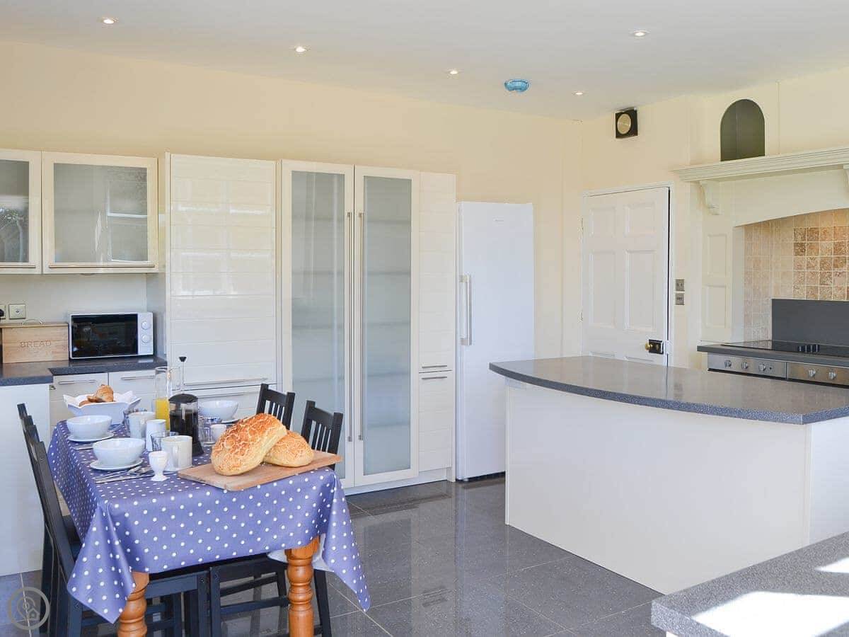 Facilities: it's got a washing machine, dishwasher, TV, WiFi. Bedding and towels are included. There's a cot and highchair if you need them. There's plenty of parking on site. You can bring up to three dogs.